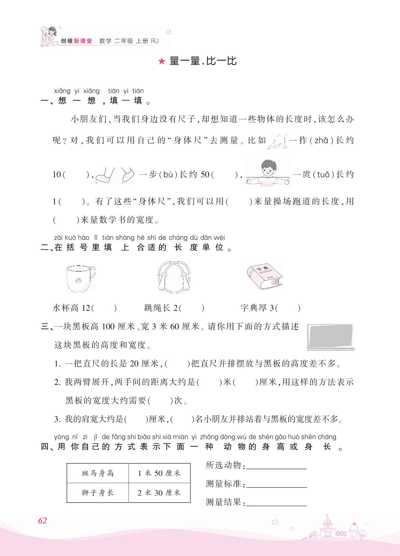 2021上册二年级数学人教版 六 表内乘法(二)——量一量,比一比