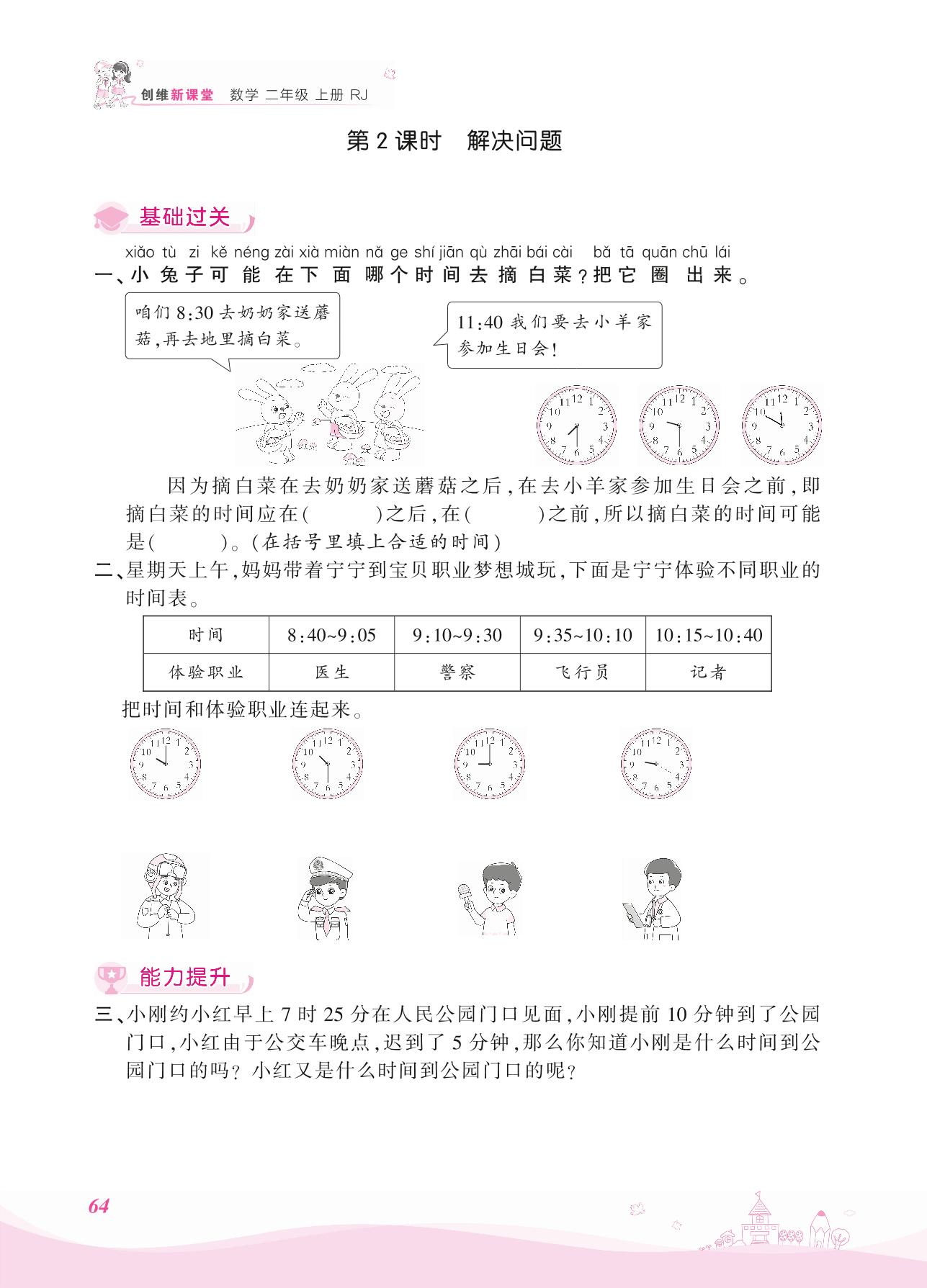 2021上册二年级数学人教版 七 认识时间——第2课时 解决问题