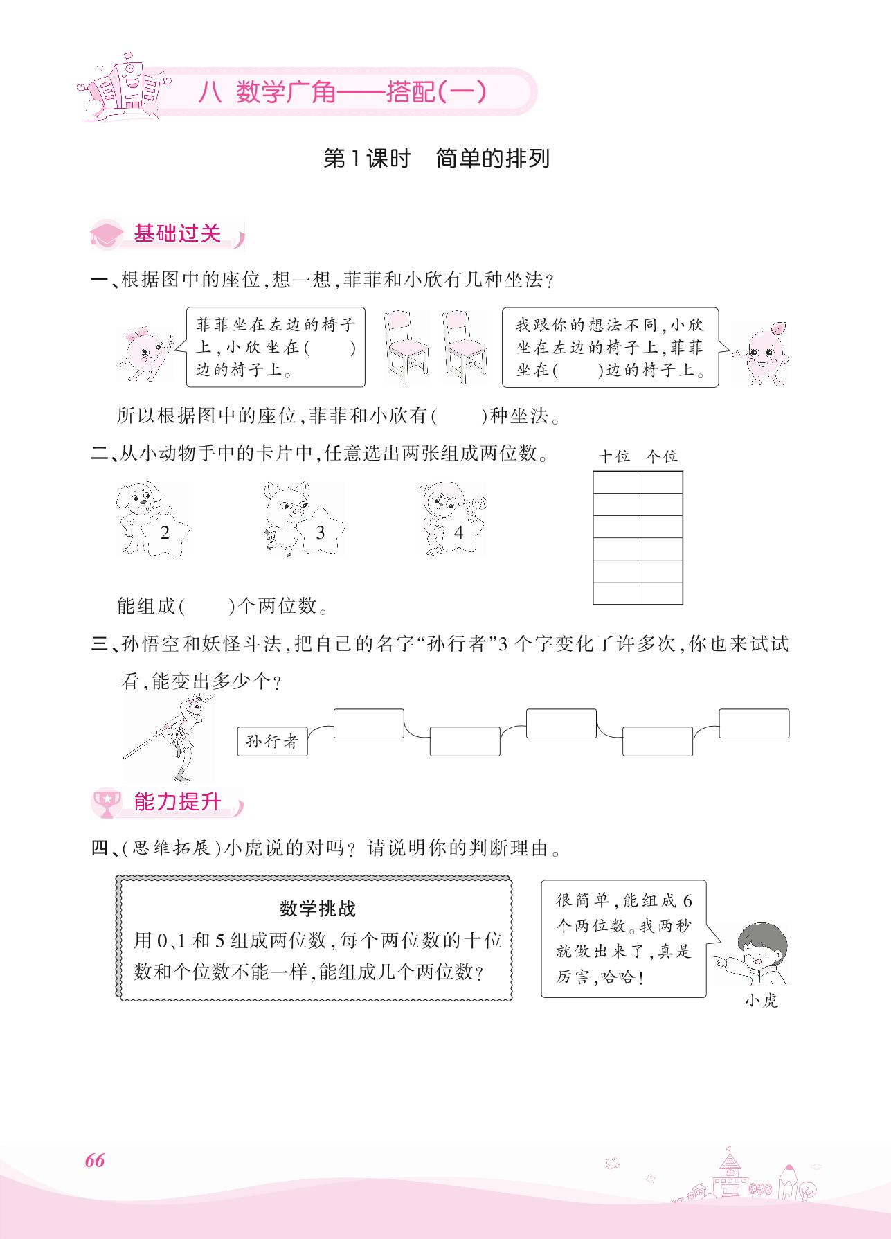 2021上册二年级数学人教版 八 数学广角——搭配(一)——第1课时 简单的排列