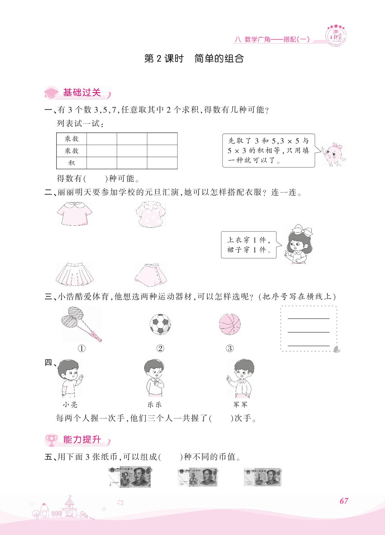 2021上册二年级数学人教版 八 数学广角——搭配(一)——第2课时 简单的组合