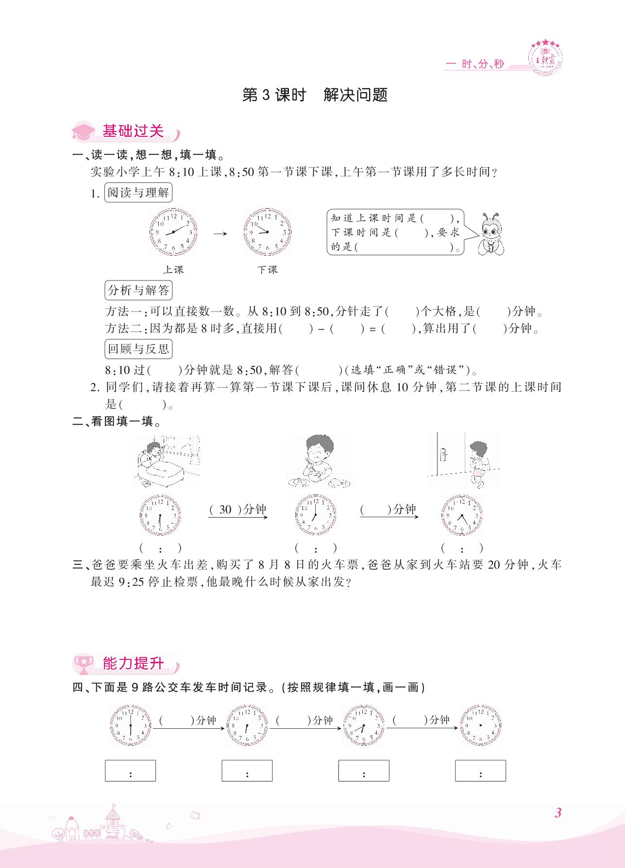 2021上册三年级数学人教版 一 时、分、秒——第3课时 解决问题