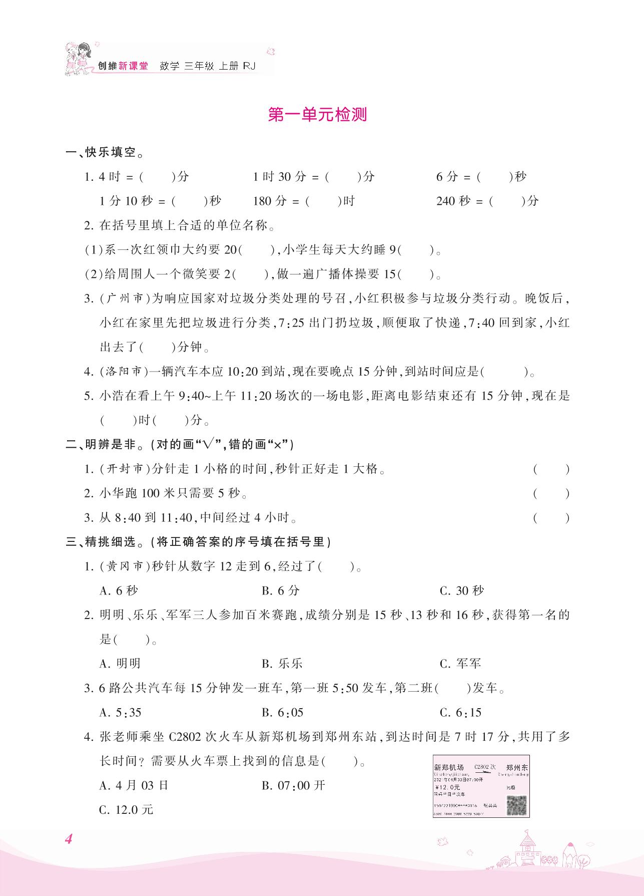 三年级数学人教版上册单元卷
