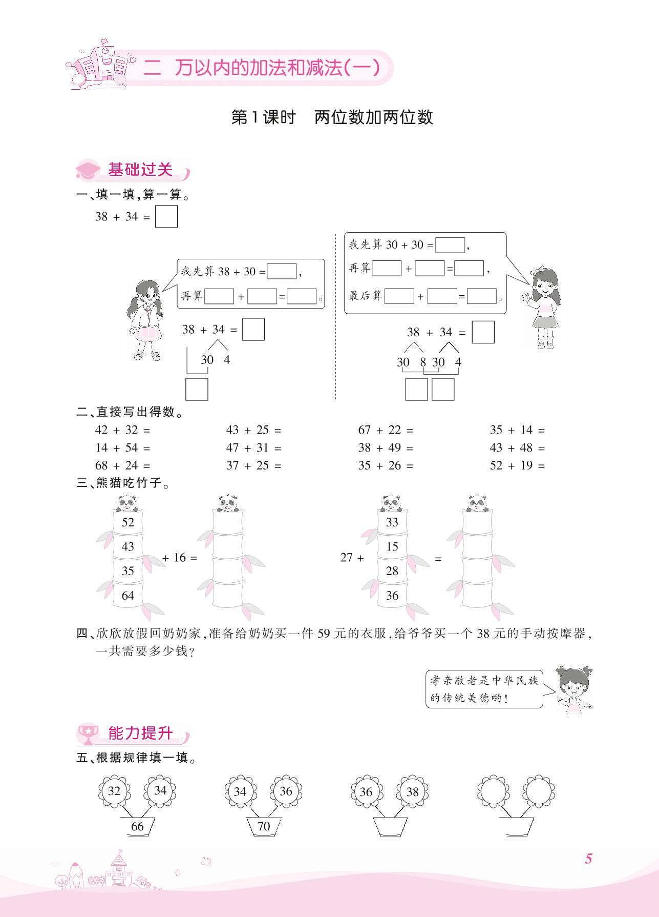 2021上册三年级数学人教版 二 万以内的加法和减法(一)——第1课时 两位数加两位数