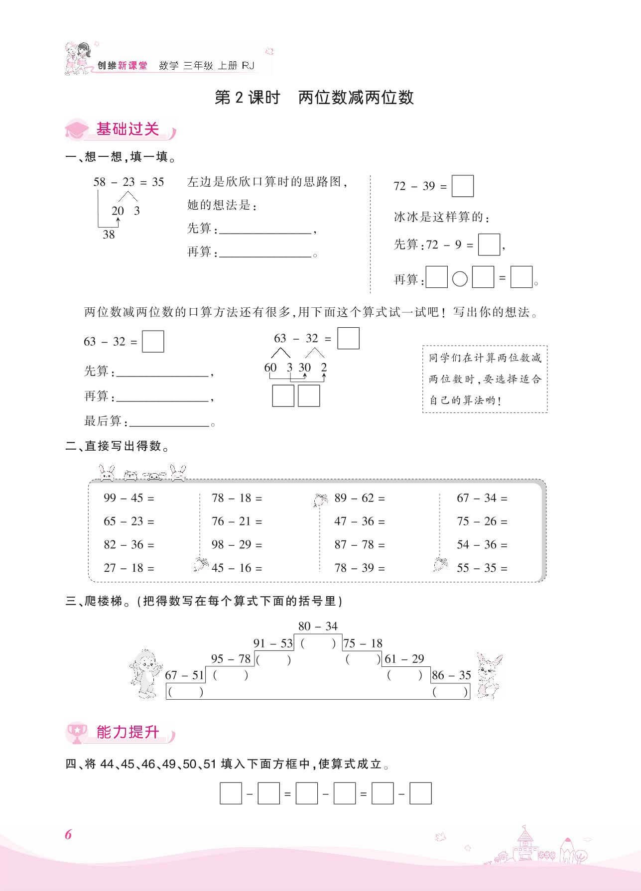 2021上册三年级数学人教版 二 万以内的加法和减法(一)——第2课时 两位数减两位数