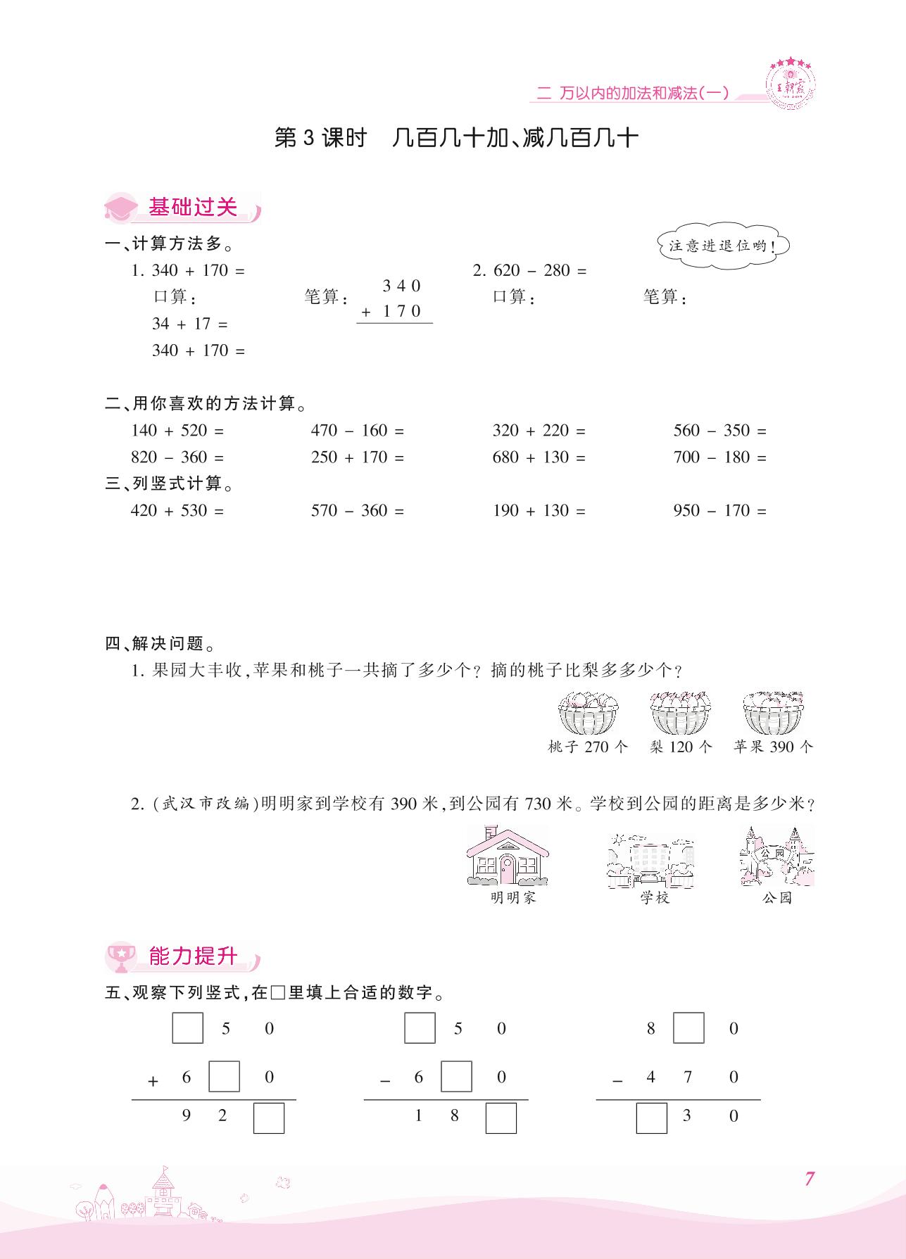 2021上册三年级数学人教版 二 万以内的加法和减法(一)——第3课时 几百几十加、减几百几十