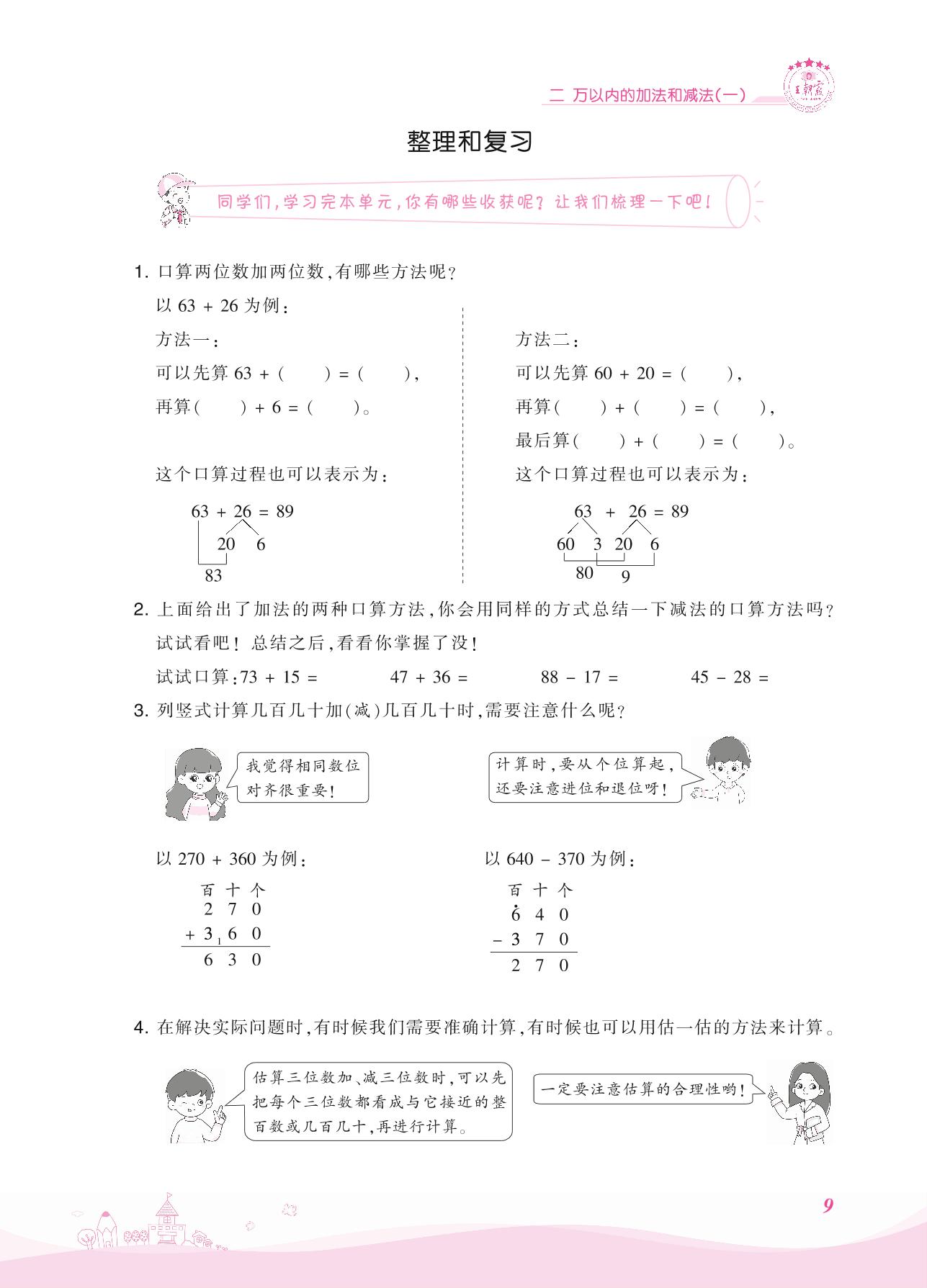 2021上册三年级数学人教版 二 万以内的加法和减法(一)——整理和复习