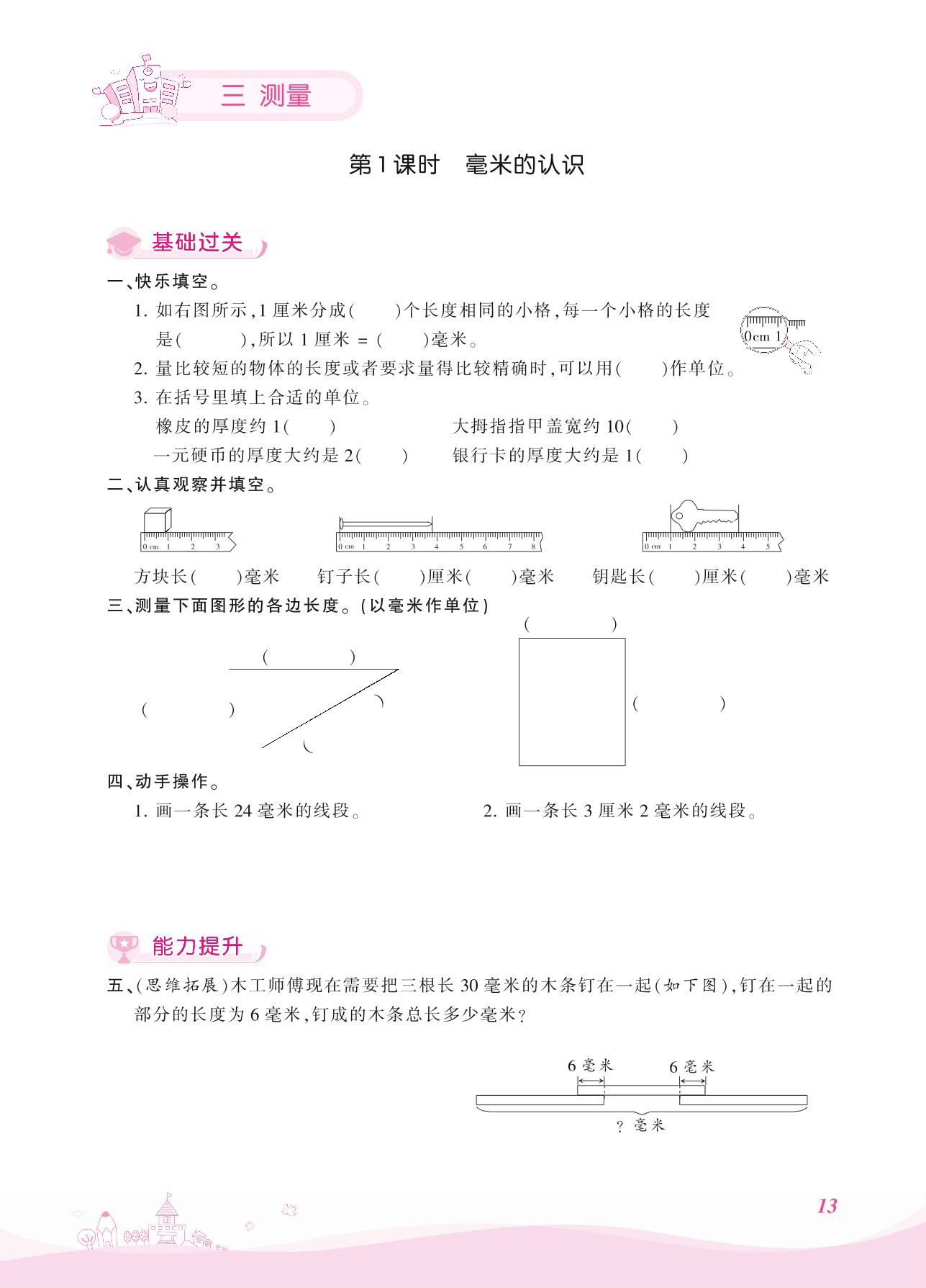 2021上册三年级数学人教版 三 测量——第1课时 毫米的认识