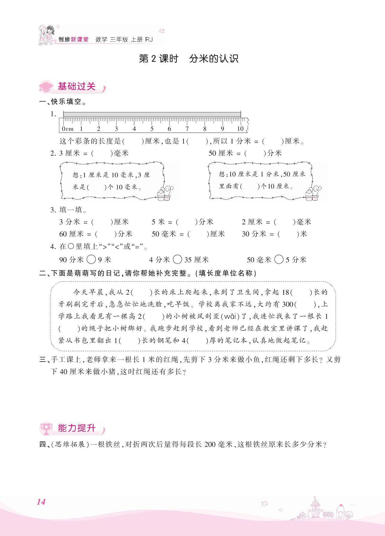 2021上册三年级数学人教版 三 测量——第2课时 分米的认识