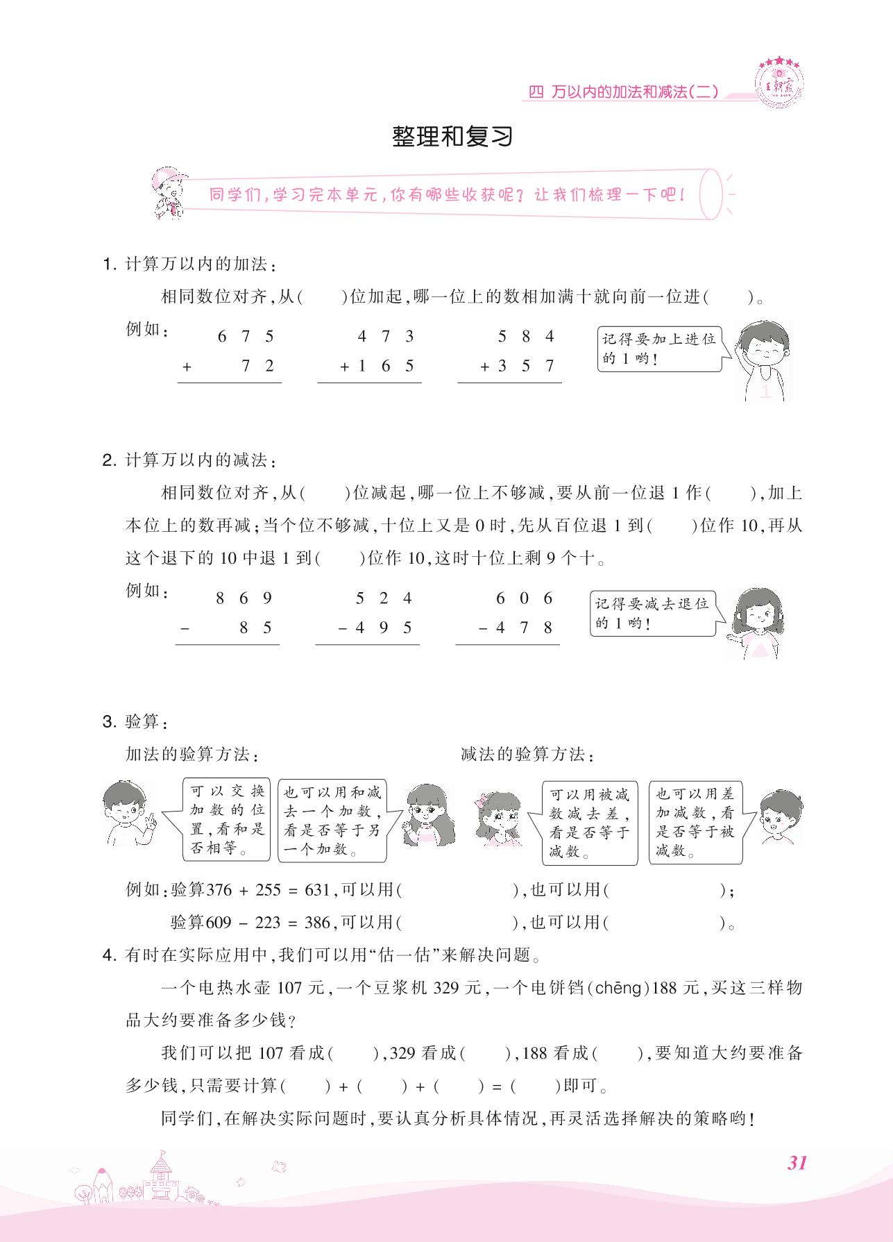 2021上册三年级数学人教版 四 万以内的加法和减法(二)——整理和复习