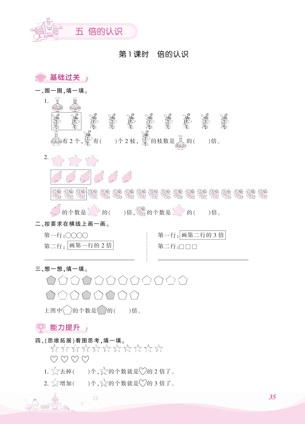 2021上册三年级数学人教版 五 倍的认识——第1课时 倍的认识
