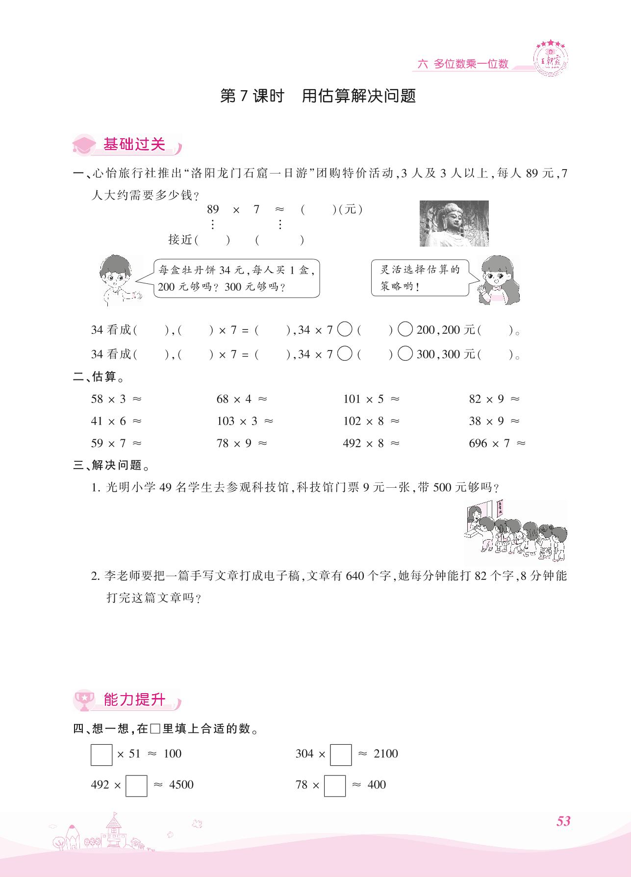 2021上册三年级数学人教版 六 多位数乘一位数 2. 笔算乘法——第7课时 用估算解决问题