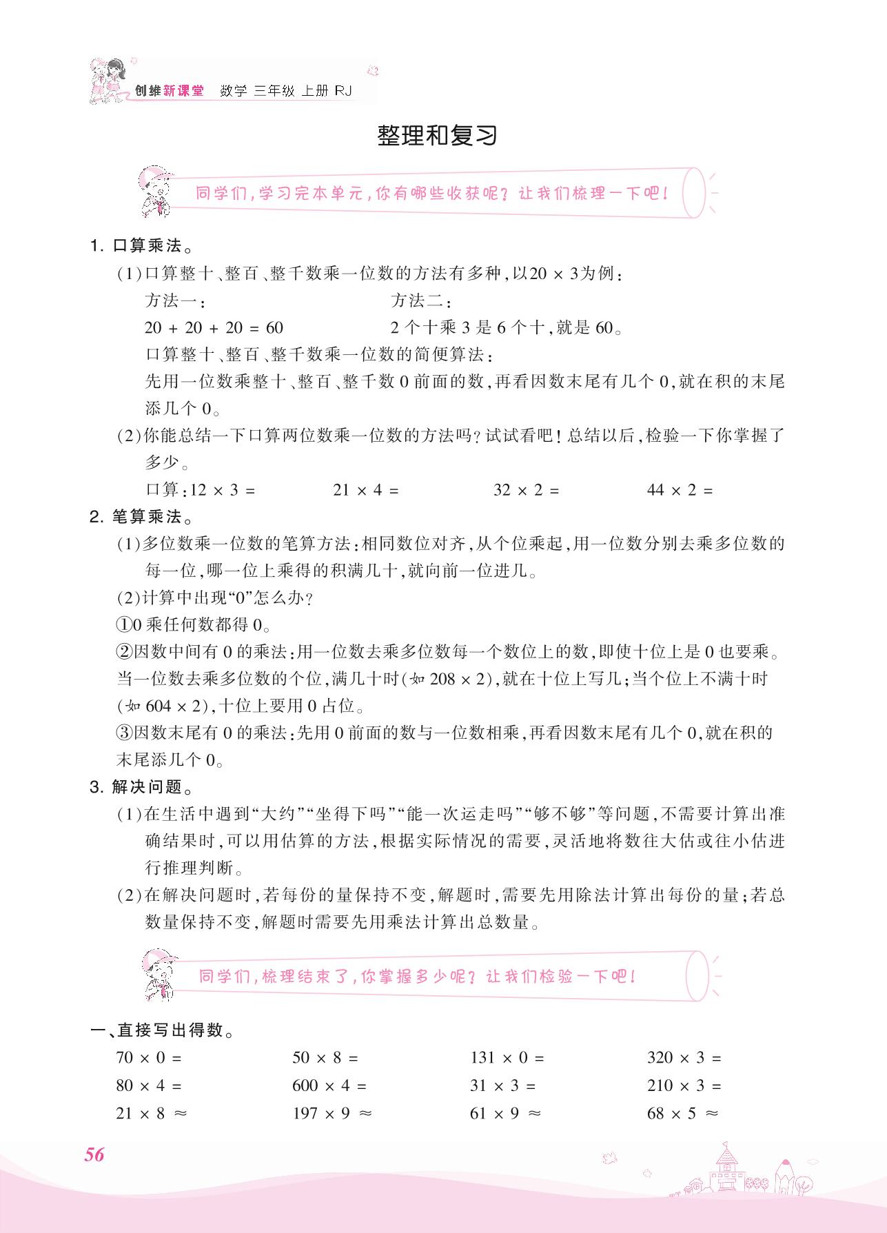 2021上册三年级数学人教版 六 多位数乘一位数——整理和复习