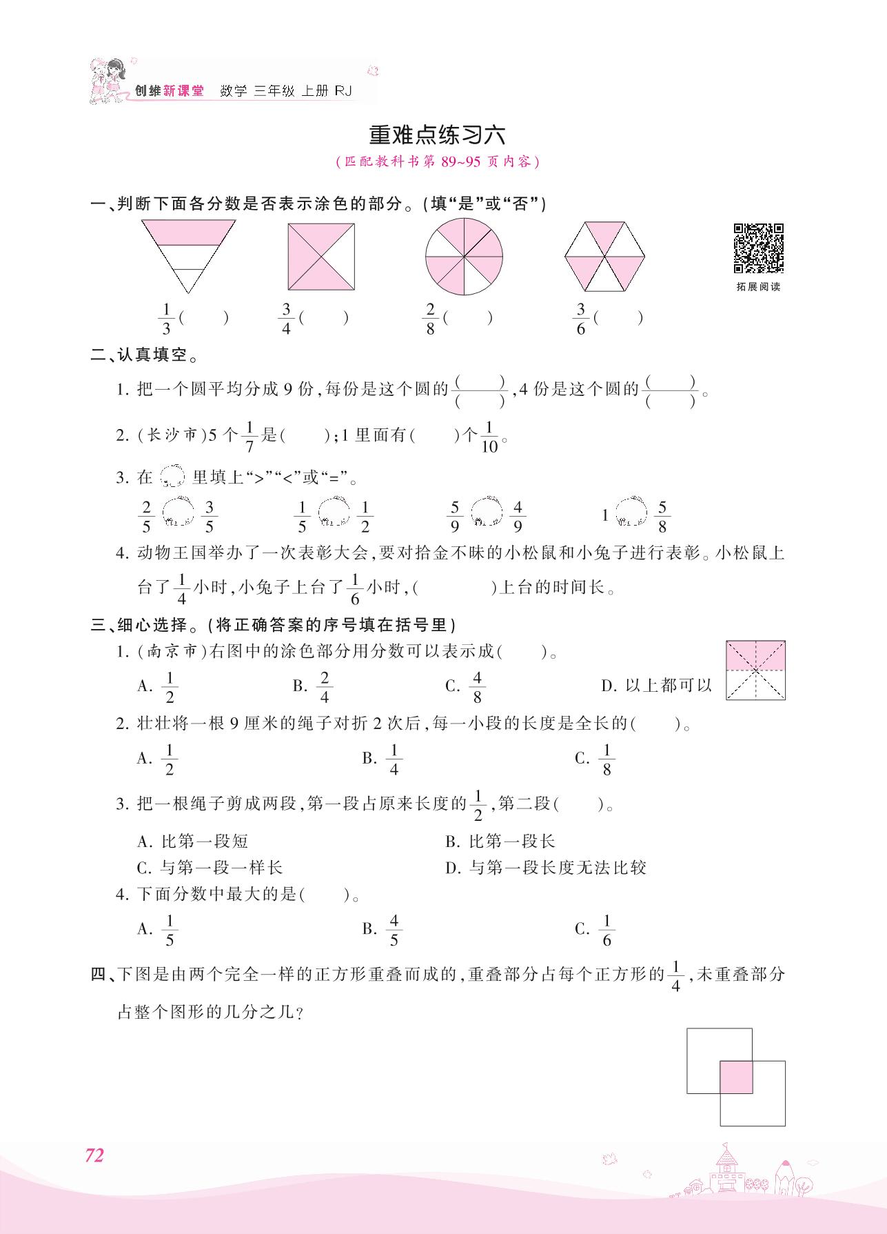 2021上册三年级数学人教版 八 分数的初步认识 1. 分数的初步认识——重难点练习六