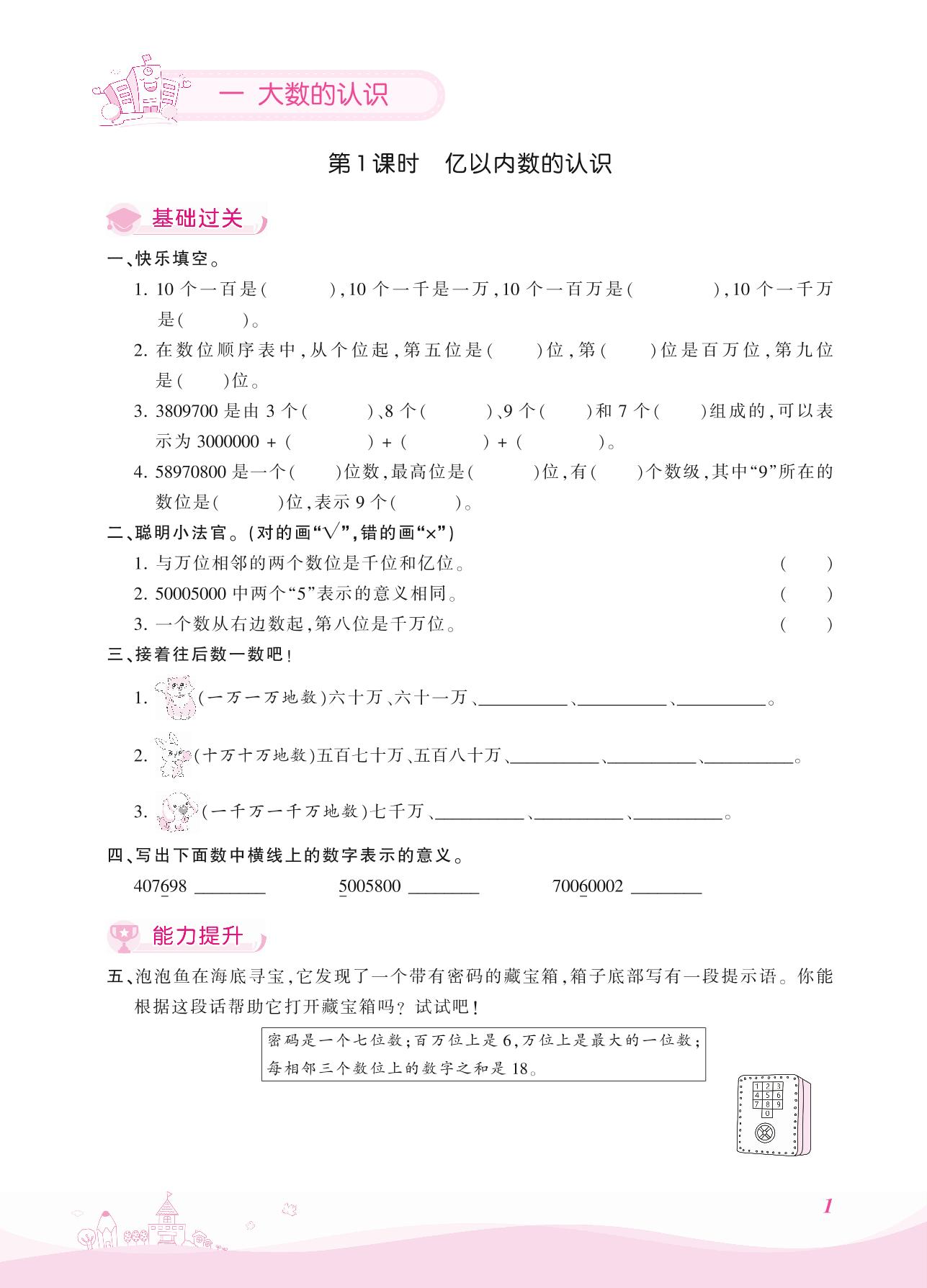 2021上册四年级数学人教版 一 大数的认识 ——第1课时 亿以内数的认识
