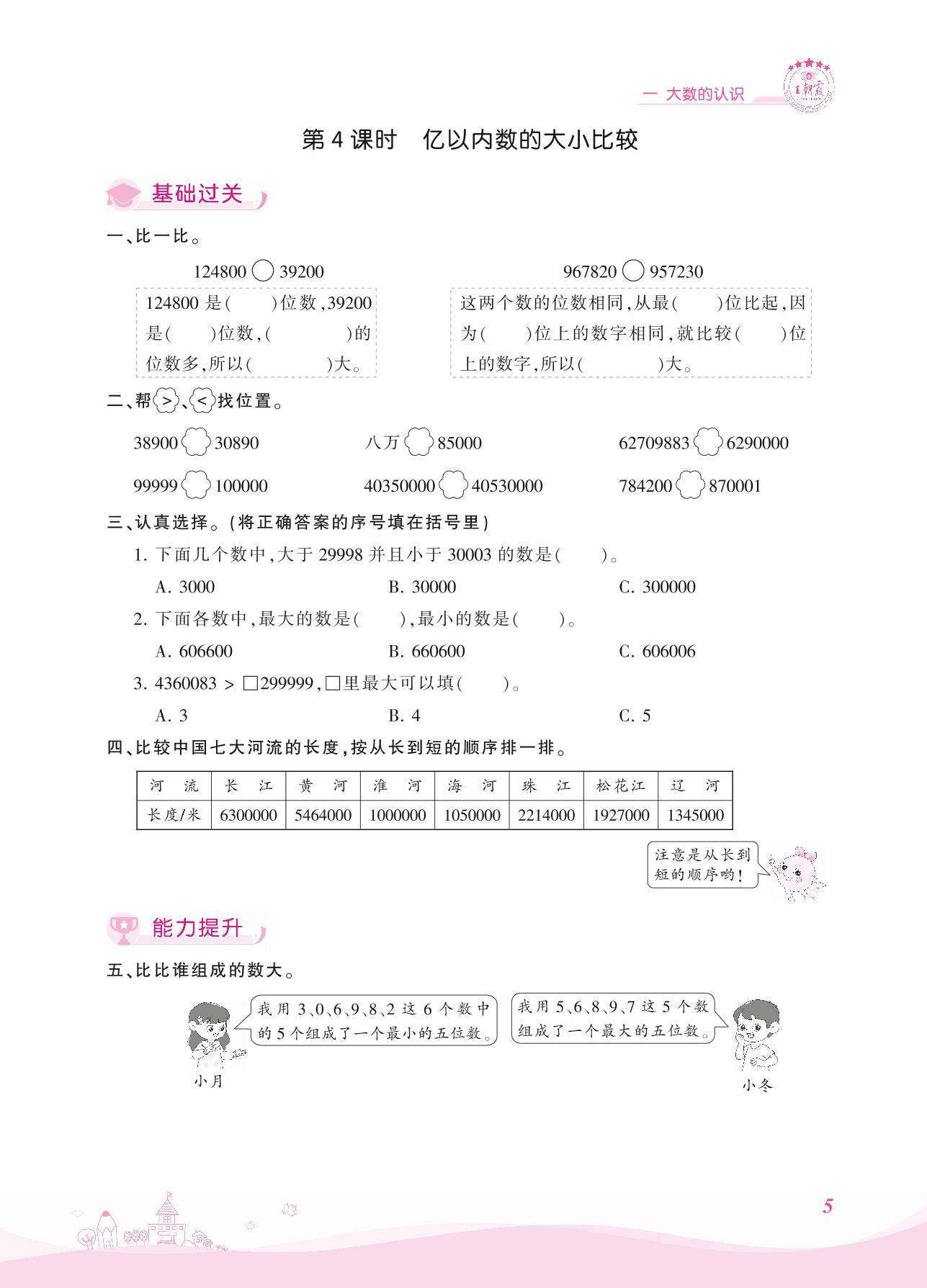 2021上册四年级数学人教版 一 大数的认识 ——第4课时 亿以内数的大小比较