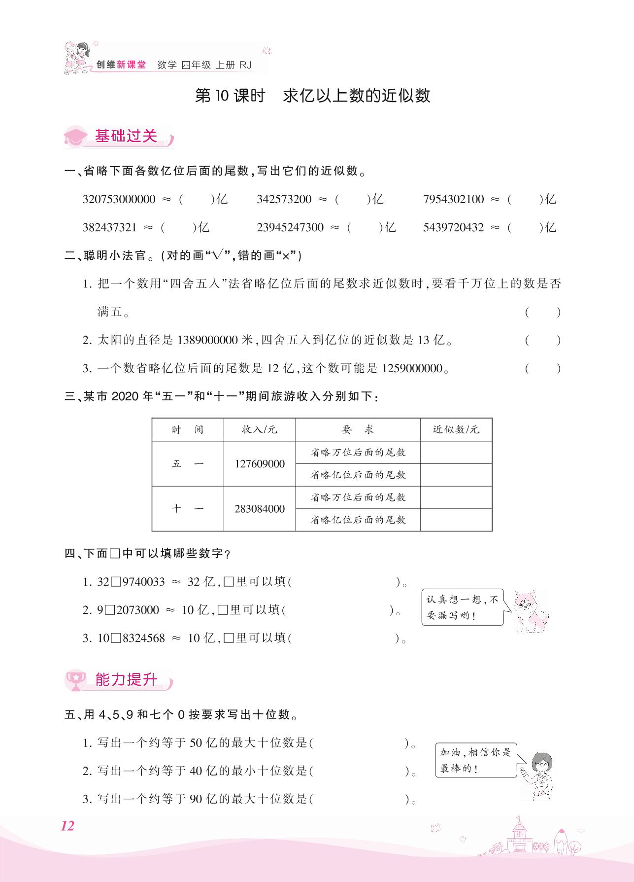 2021上册四年级数学人教版 一 大数的认识 ——第10课时 求亿以上数的近似数