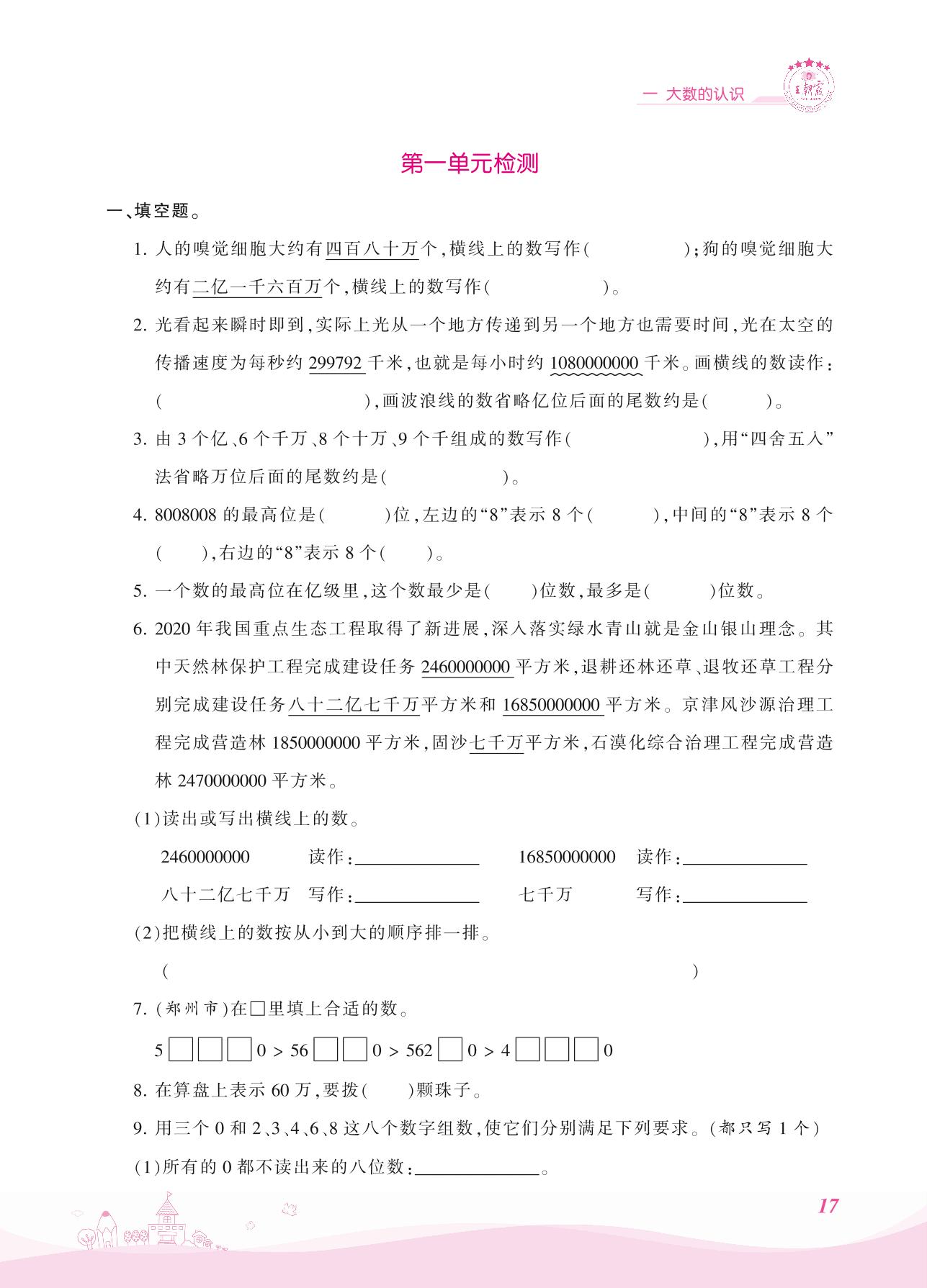 四年级数学人教版上册单元卷