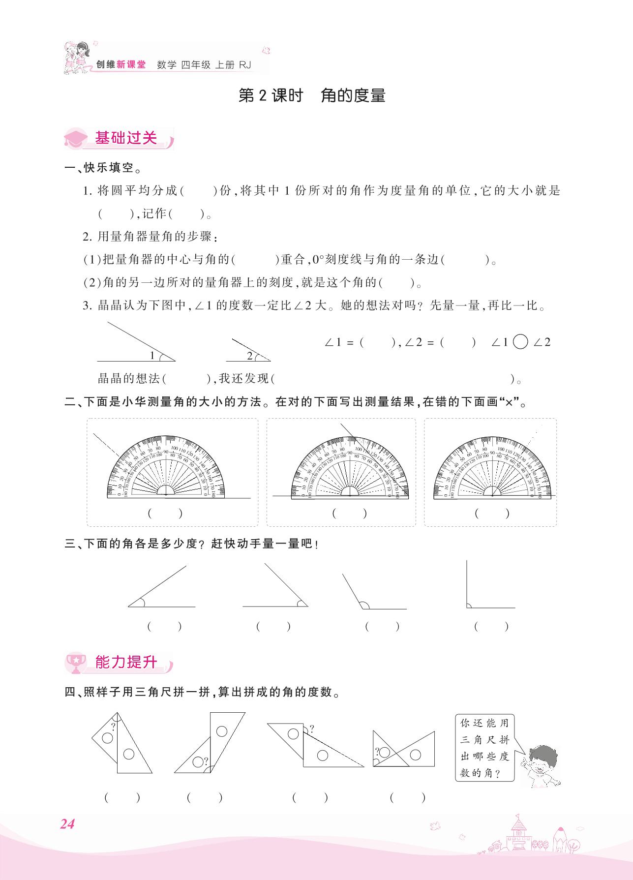2021上册四年级数学人教版 三 角的度量——第2课时 角的度量