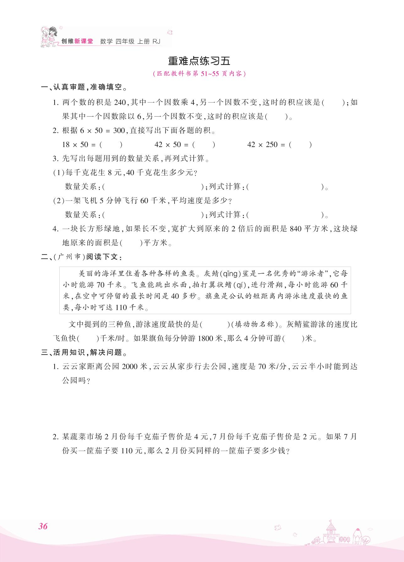 2021上册四年级数学人教版 四 三位数乘两位数——重难点练习五