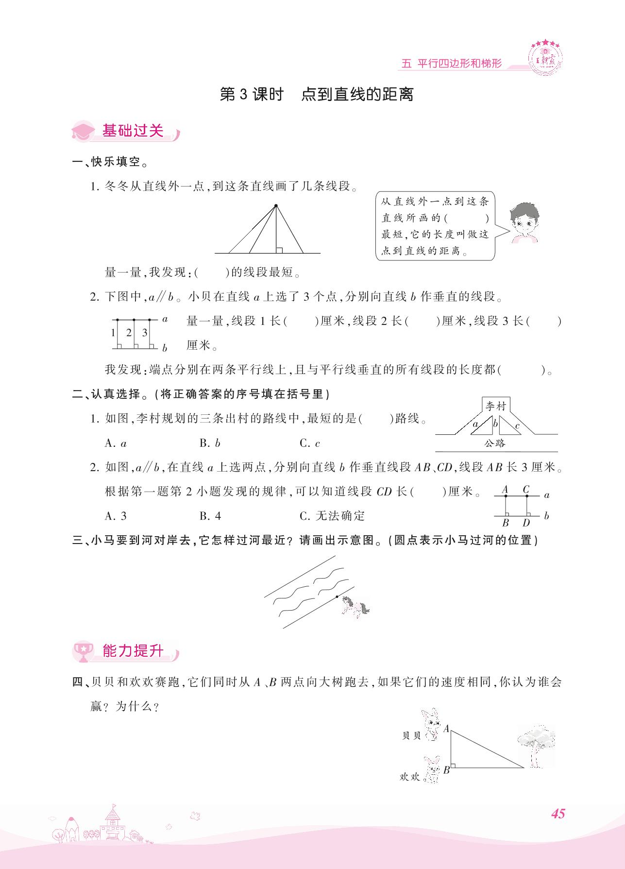 2021上册四年级数学人教版 五 平行四边形和梯形——第3课时 点到直线的距离