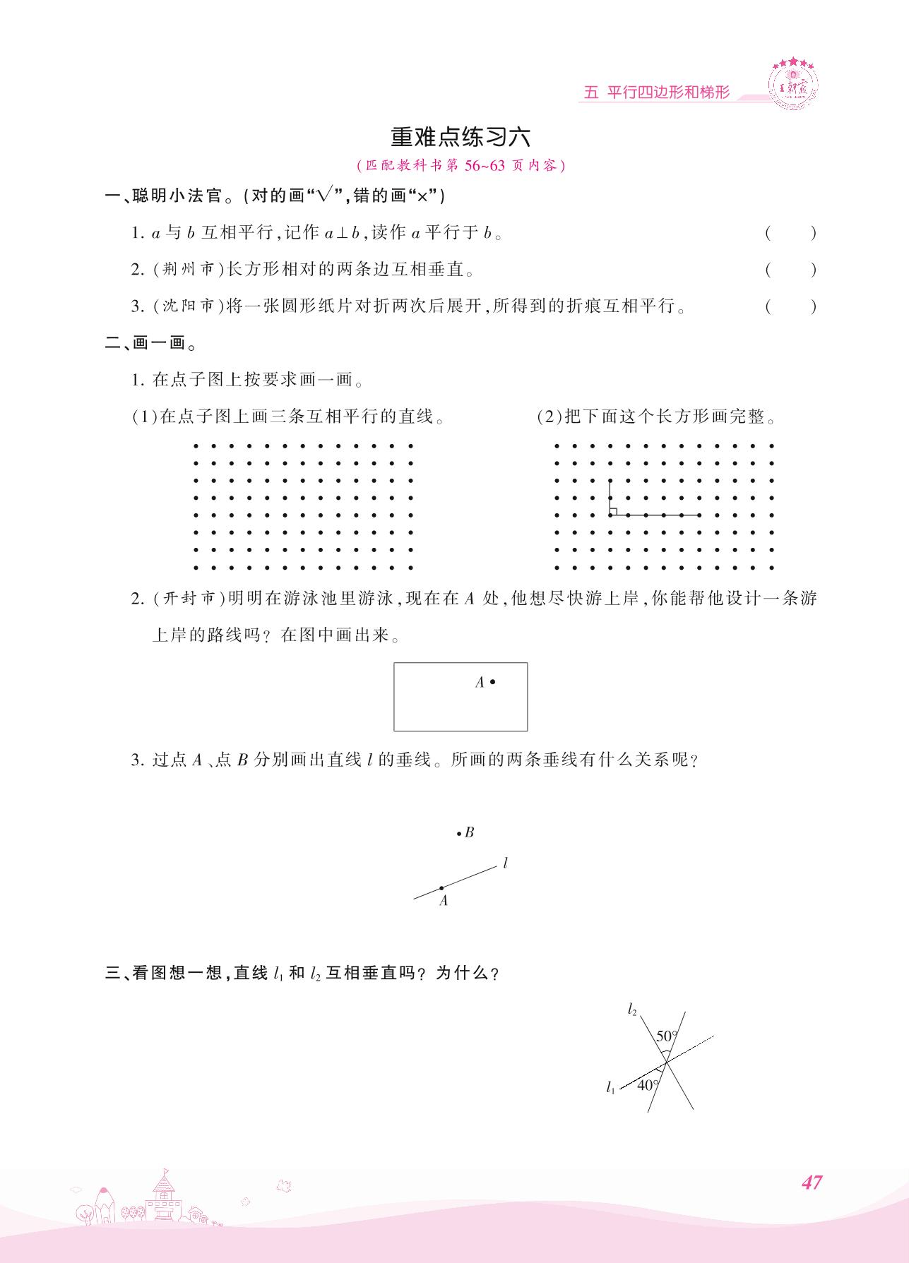 2021上册四年级数学人教版 五 平行四边形和梯形——重难点练习六