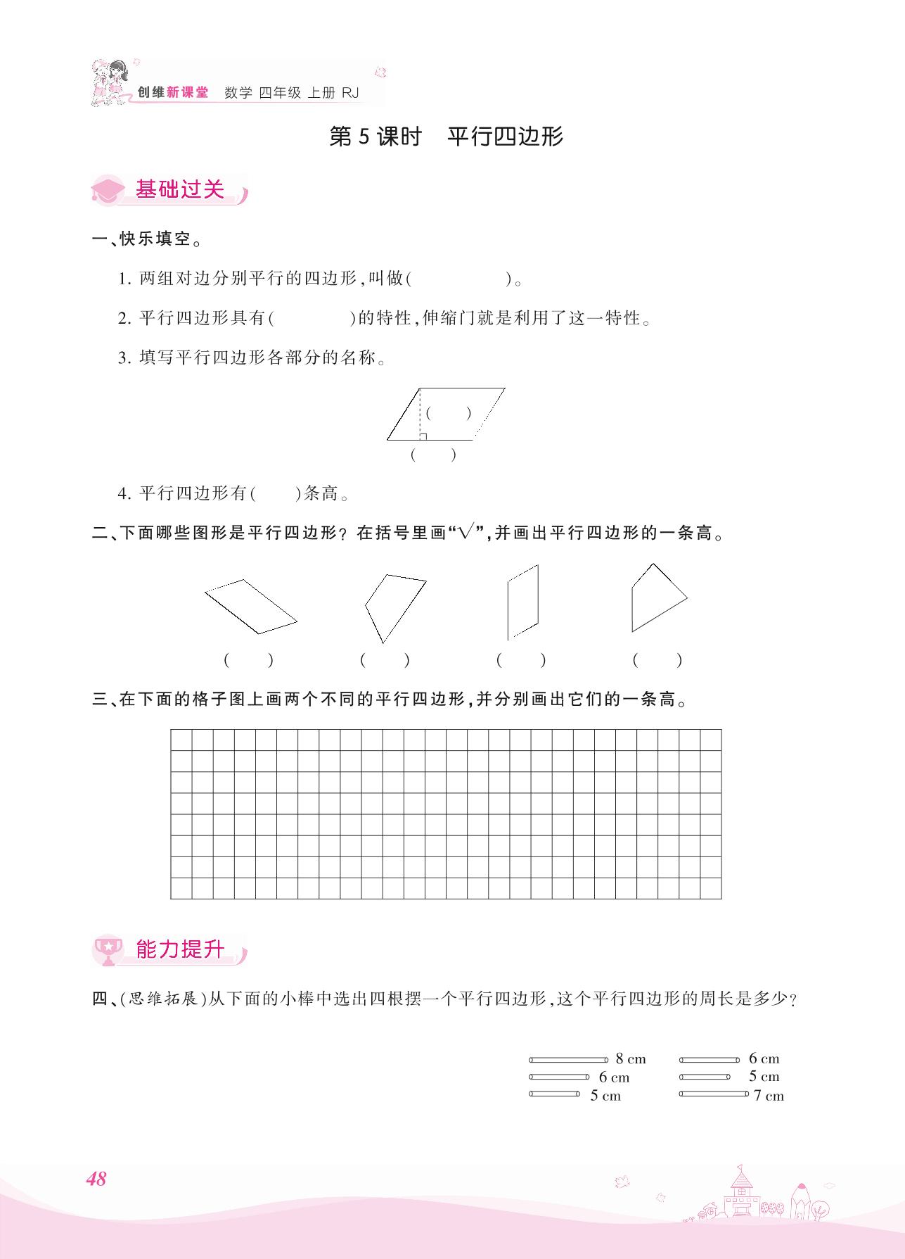 2021上册四年级数学人教版 五 平行四边形和梯形——第5课时 平行四边形