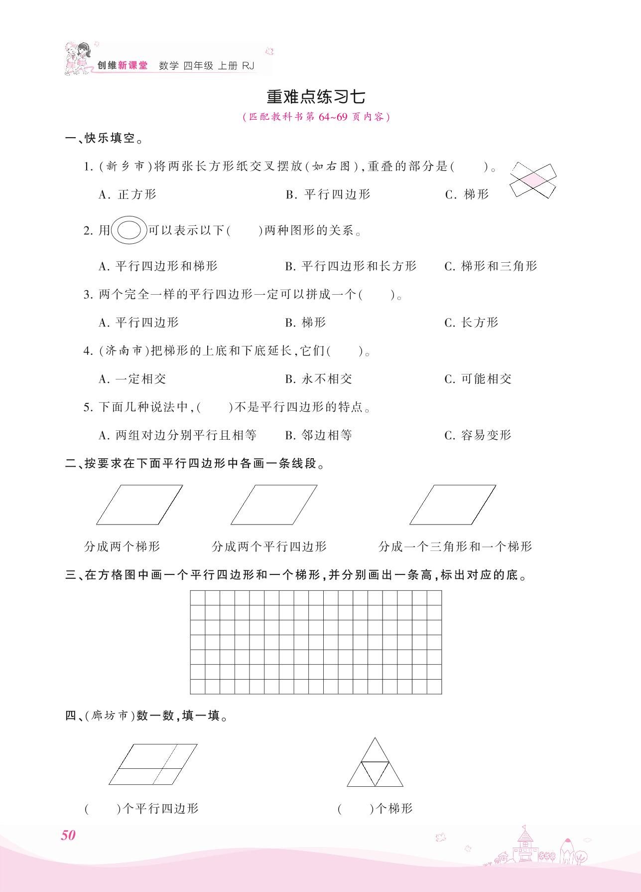 2021上册四年级数学人教版 五 平行四边形和梯形——重难点练习七