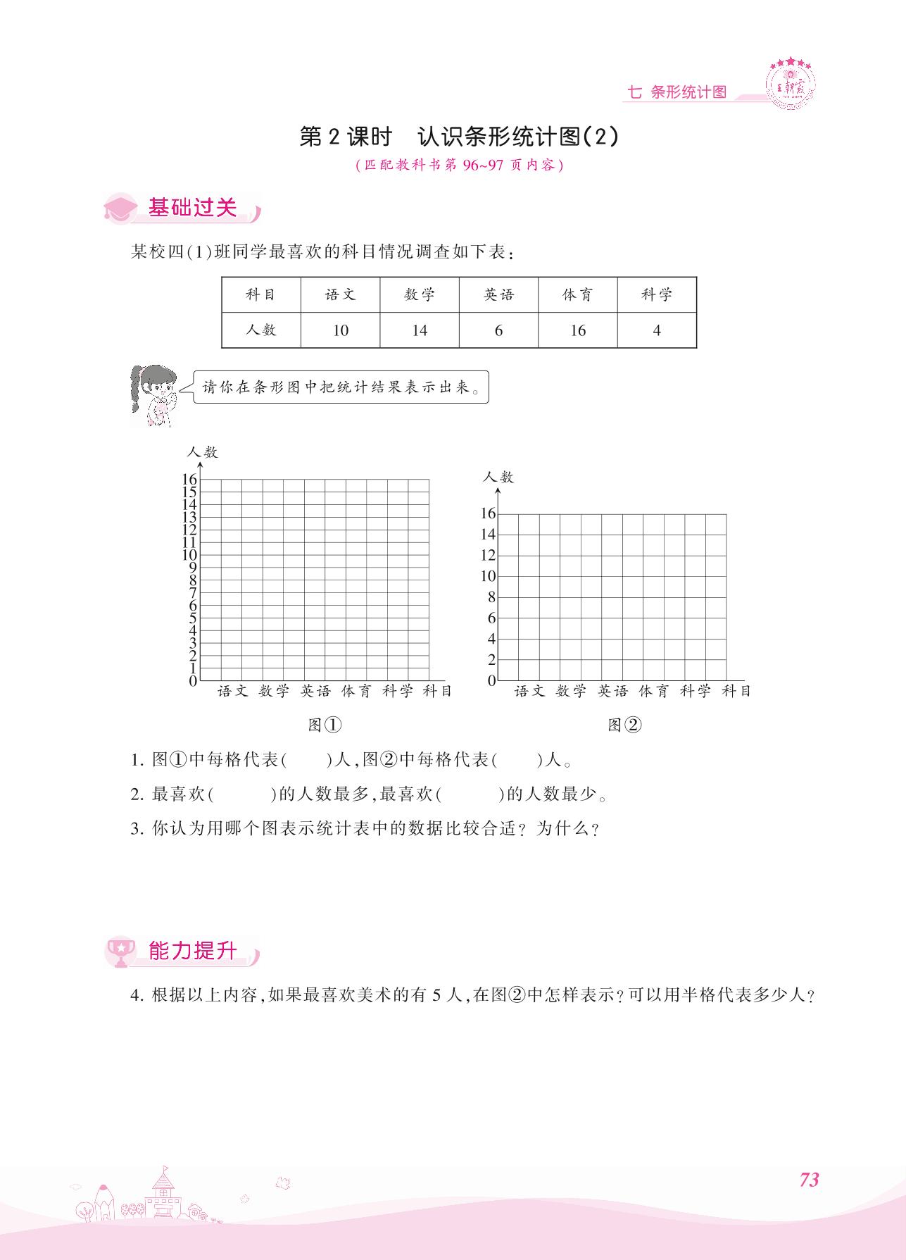 2021上册四年级数学人教版 七 条形统计图——第2课时 认识条形统计图(2)