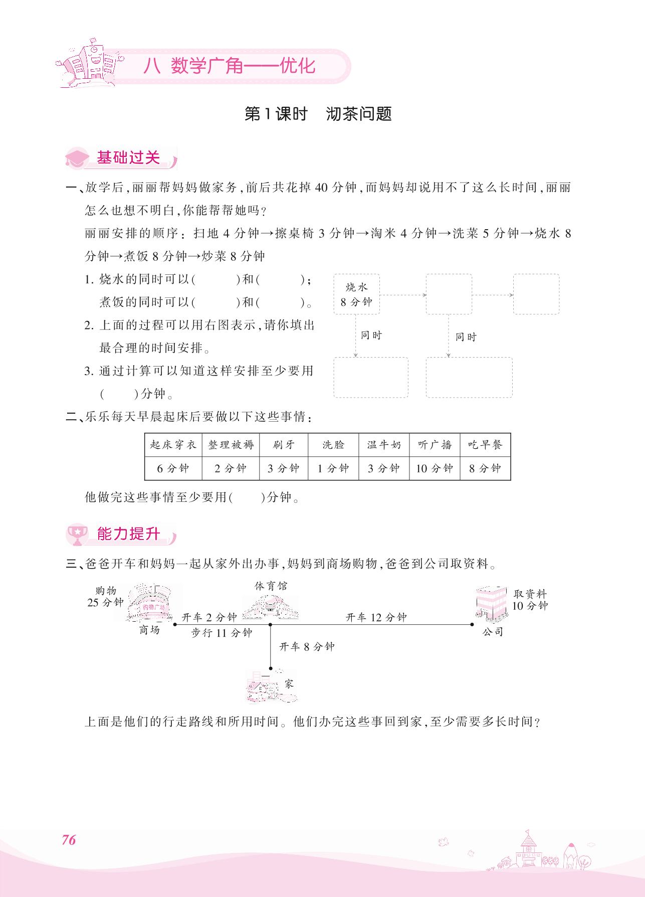 2021上册四年级数学人教版 八 数学广角——优化——第1课时 沏茶问题