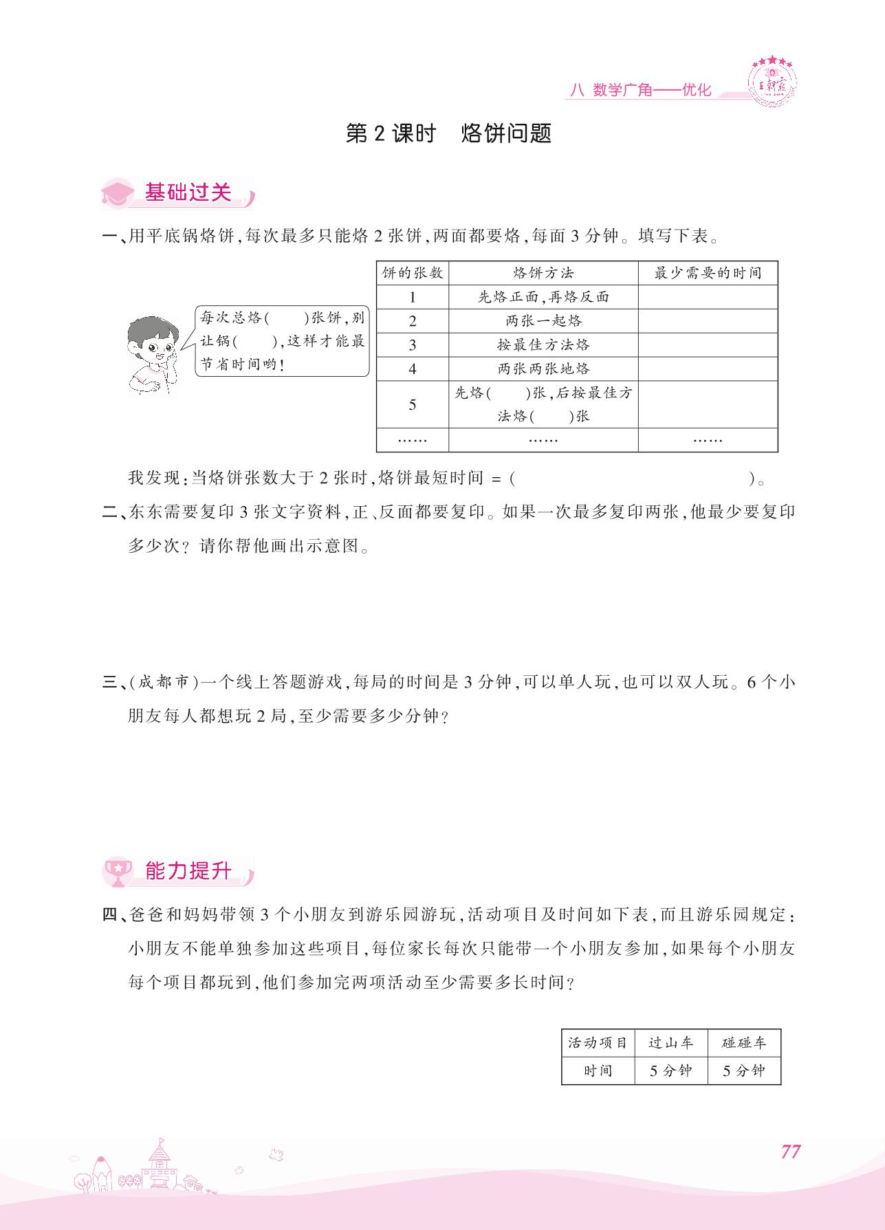 2021上册四年级数学人教版 八 数学广角——优化——第2课时 烙饼问题