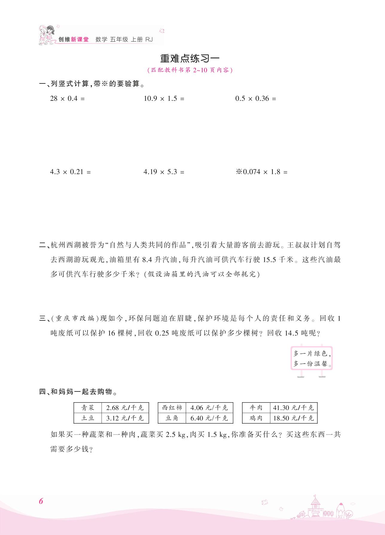 2021上册五年级数学人教版 一 小数乘法 2. 小数乘小数——重难点练习一