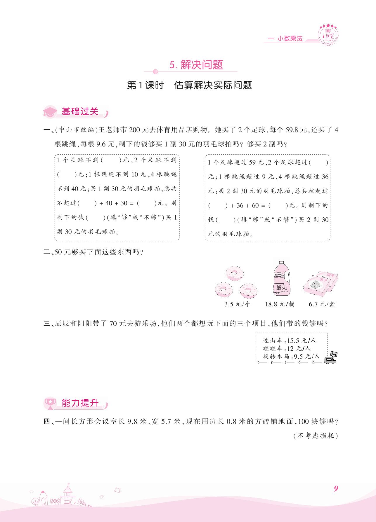2021上册五年级数学人教版 一 小数乘法 5. 解决问题——第1课时 估算解决实际问题