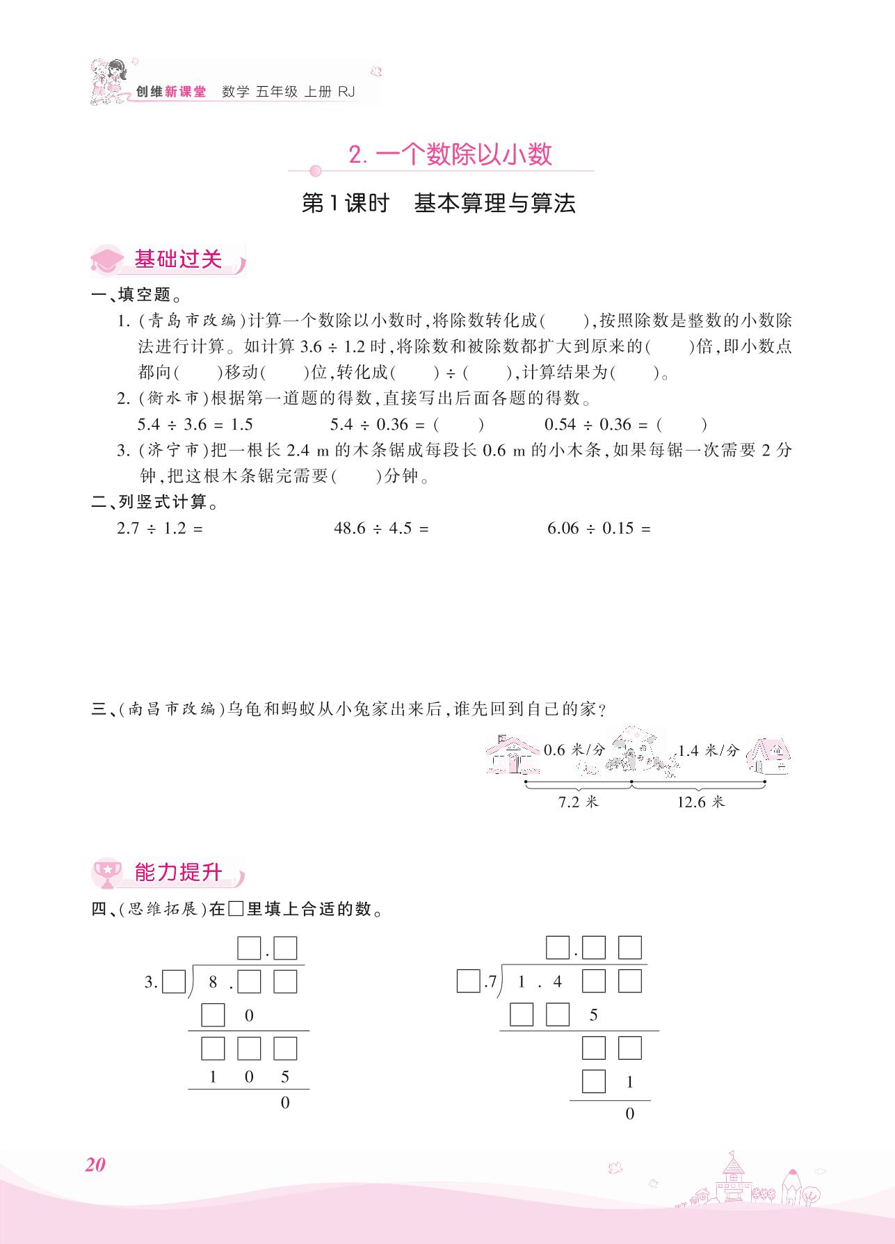 2021上册五年级数学人教版 三 小数除法 2. 一个数除以小数——第1课时 基本算理与算法