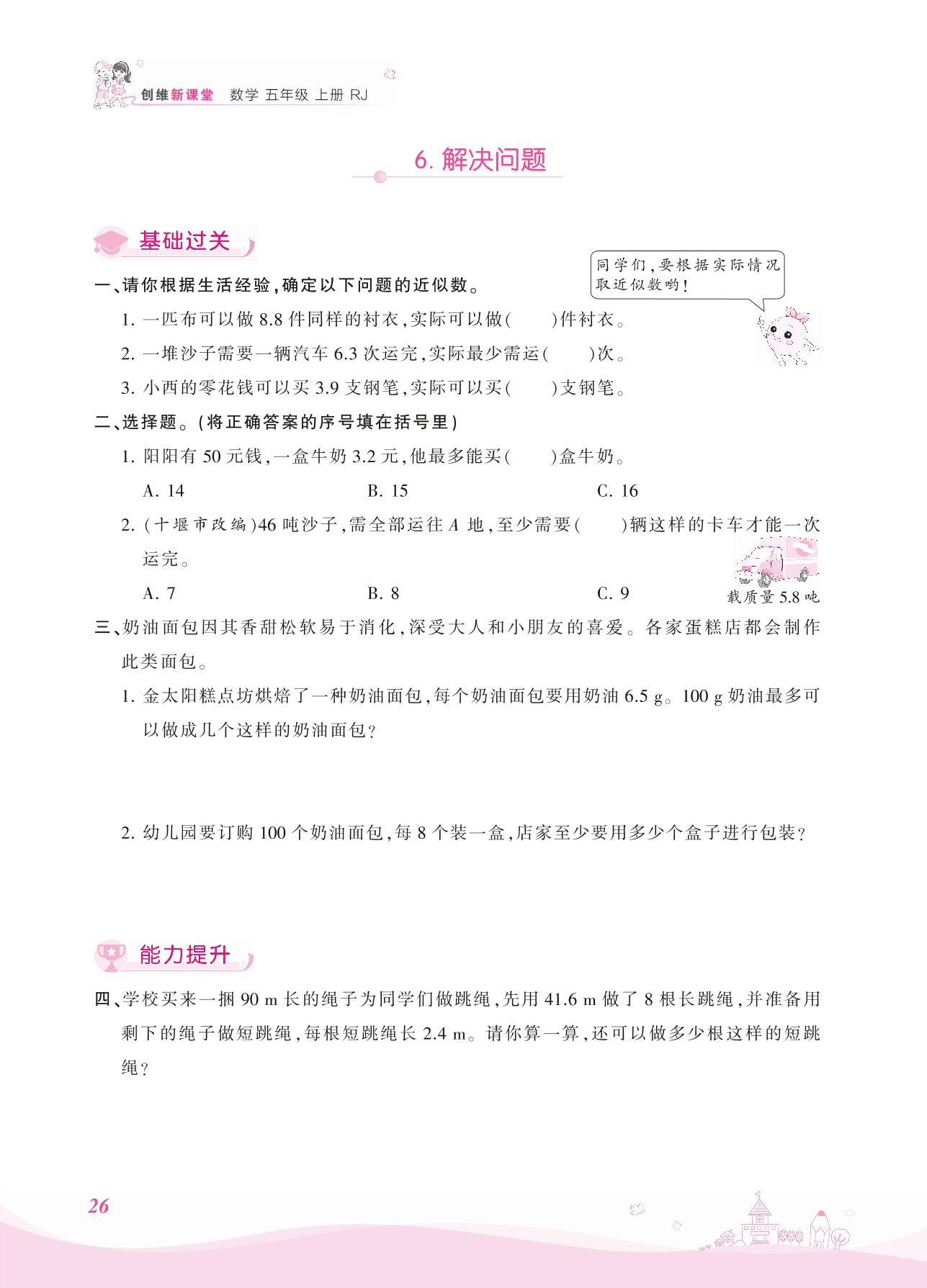 2021上册五年级数学人教版 三 小数除法 6. 解决问题