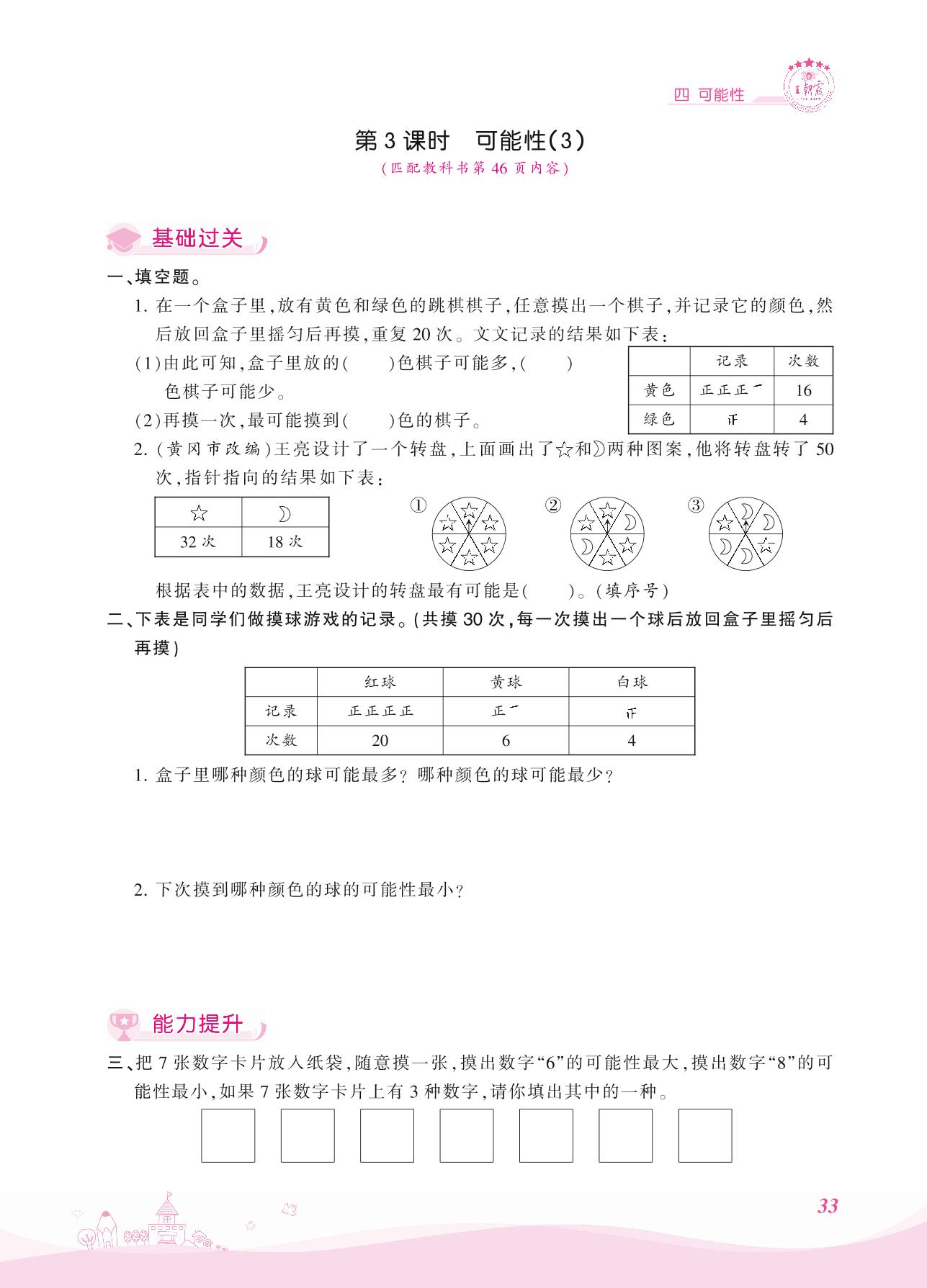 2021上册五年级数学人教版 四 可能性——第3课时 可能性(3)