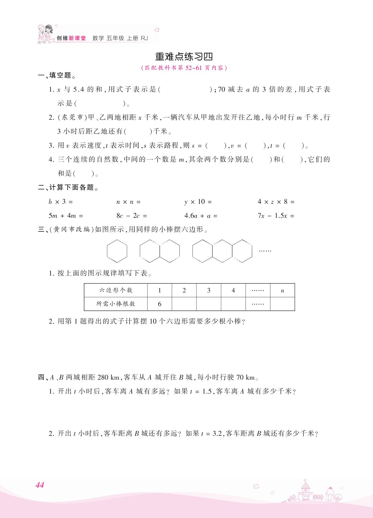 2021上册五年级数学人教版 五 简易方程 重难点练习四