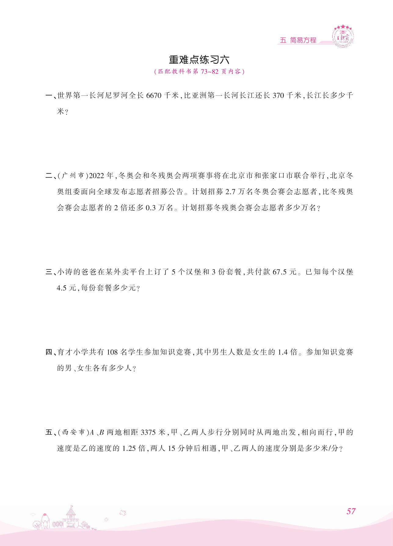 2021上册五年级数学人教版 五 简易方程——重难点练习六