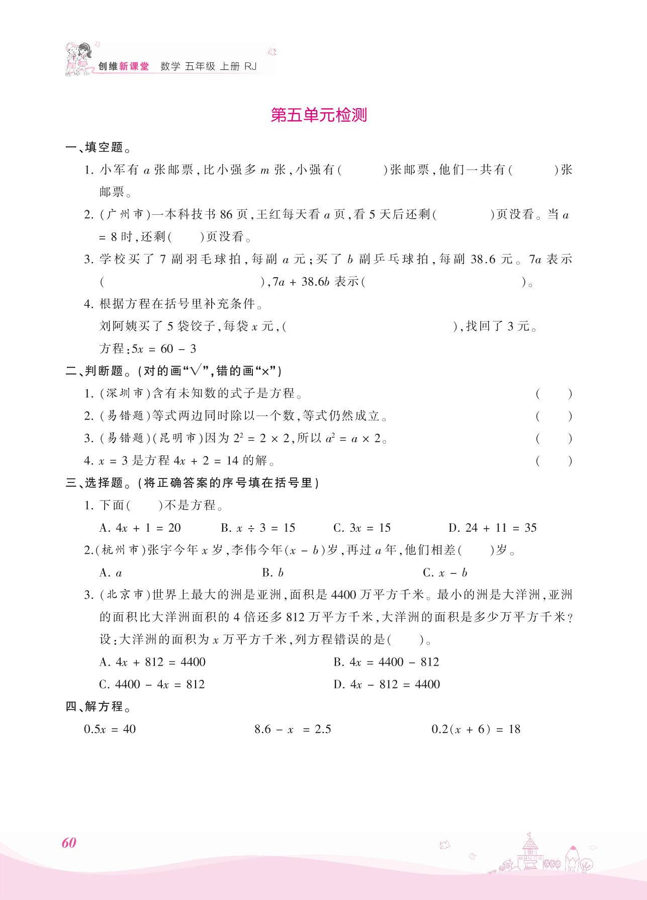 五年级数学人教版上册单元卷