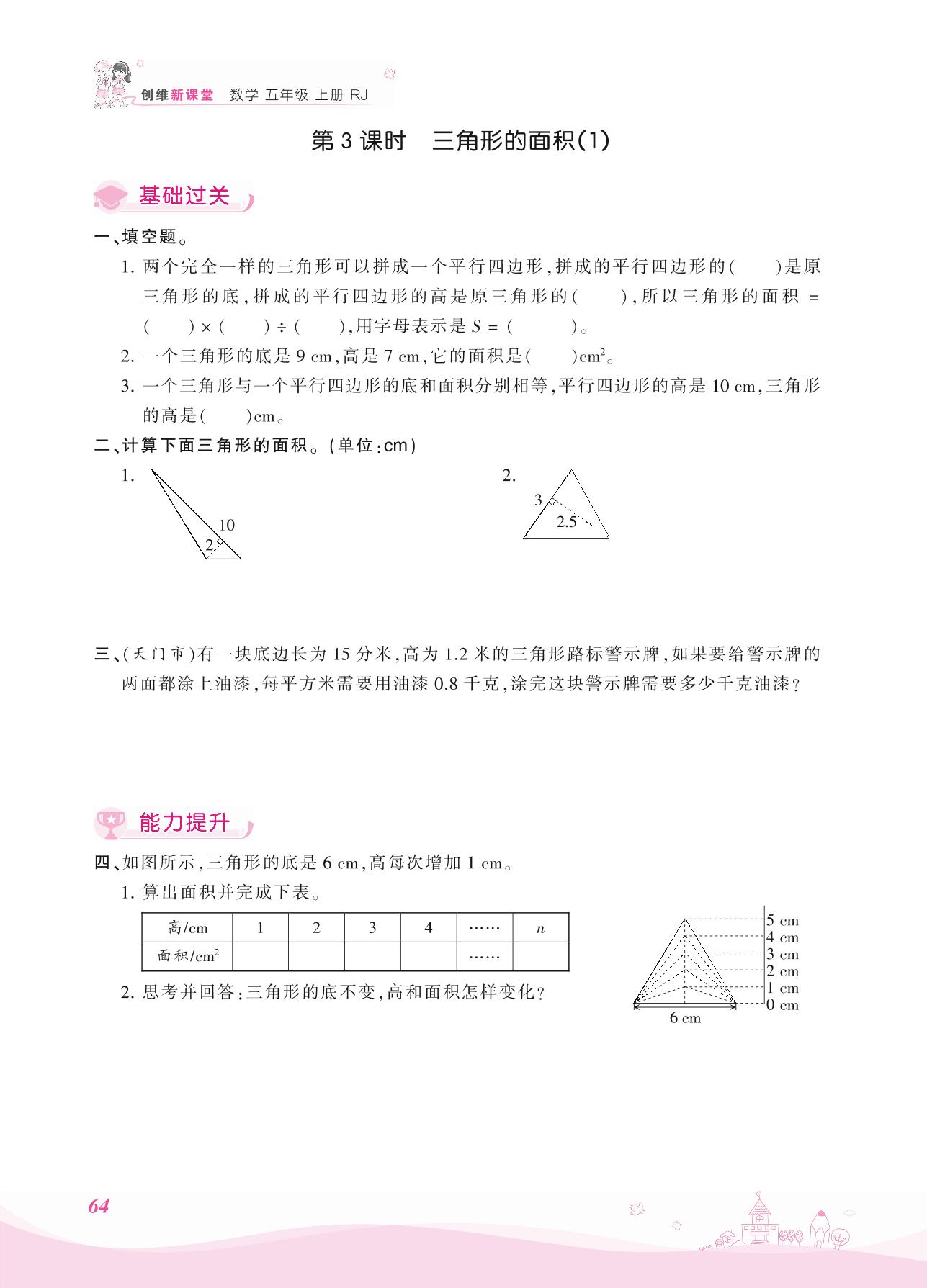 2021上册五年级数学人教版 六 多边形的面积——第3课时 三角形的面积(1)