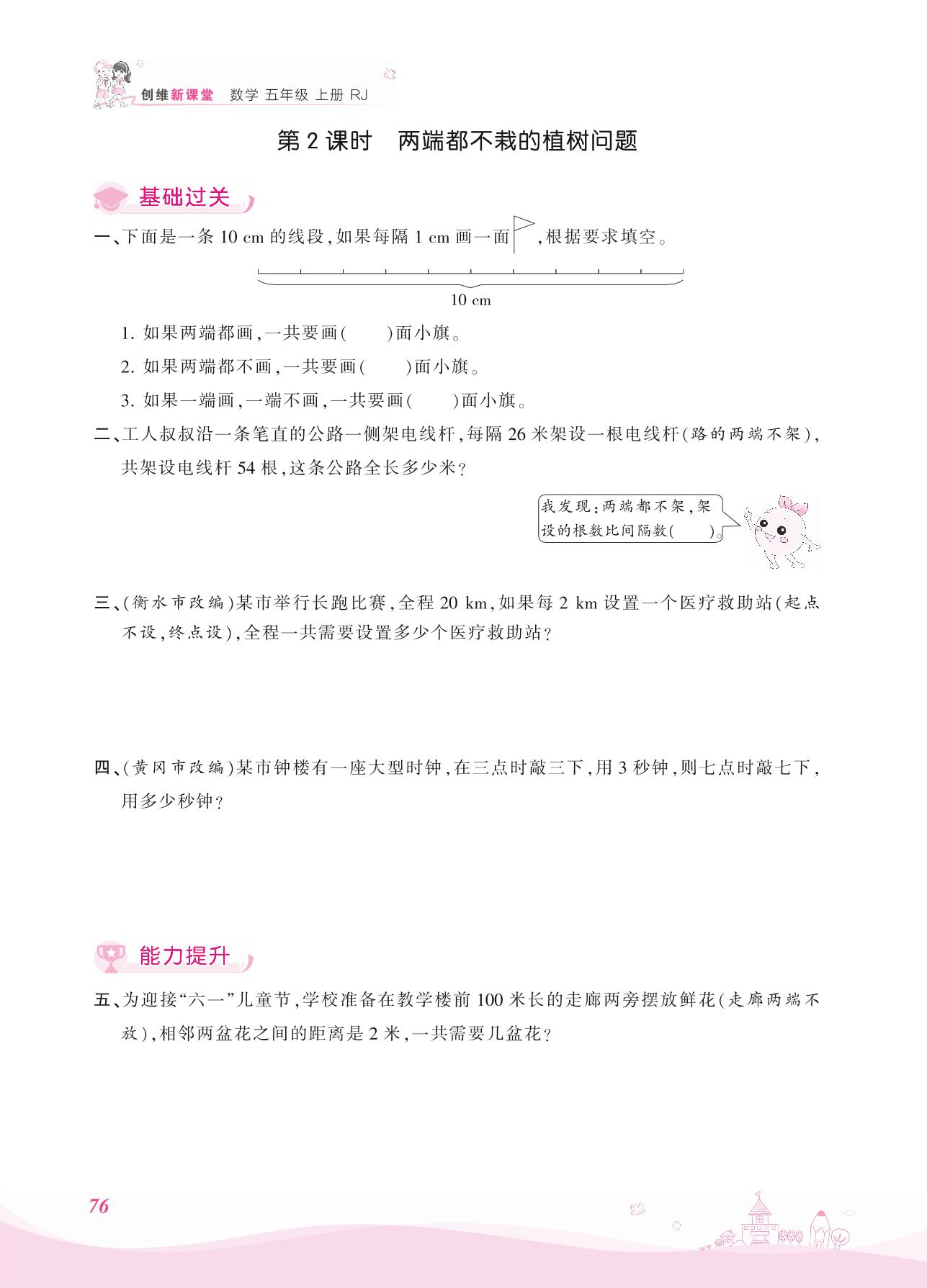 2021上册五年级数学人教版 七 数学广角——植树问题——第2课时 两端都不栽的植树问题