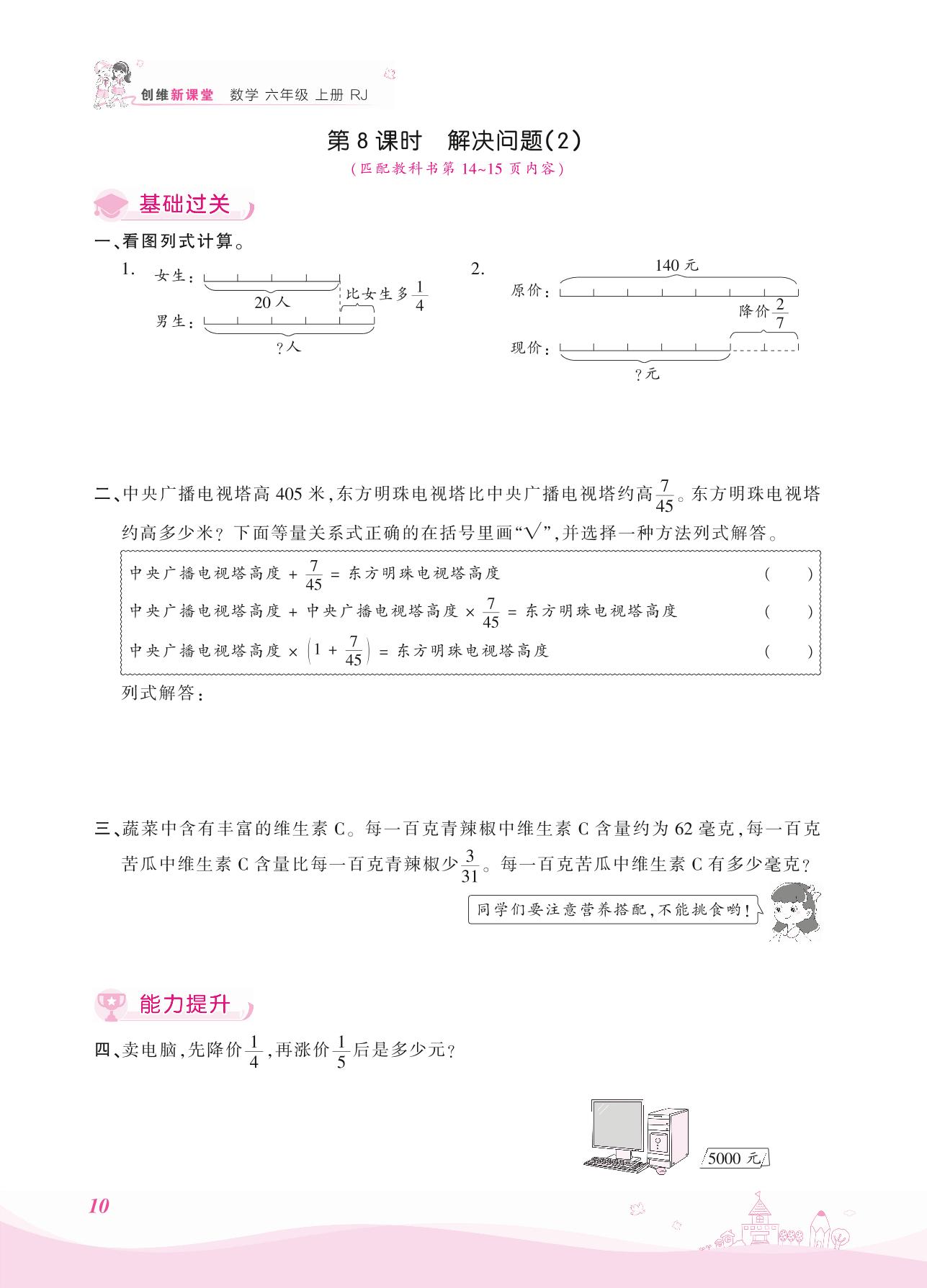 2021上册六年级数学人教版 一 分数乘法——第8课时 解决问题(2)
