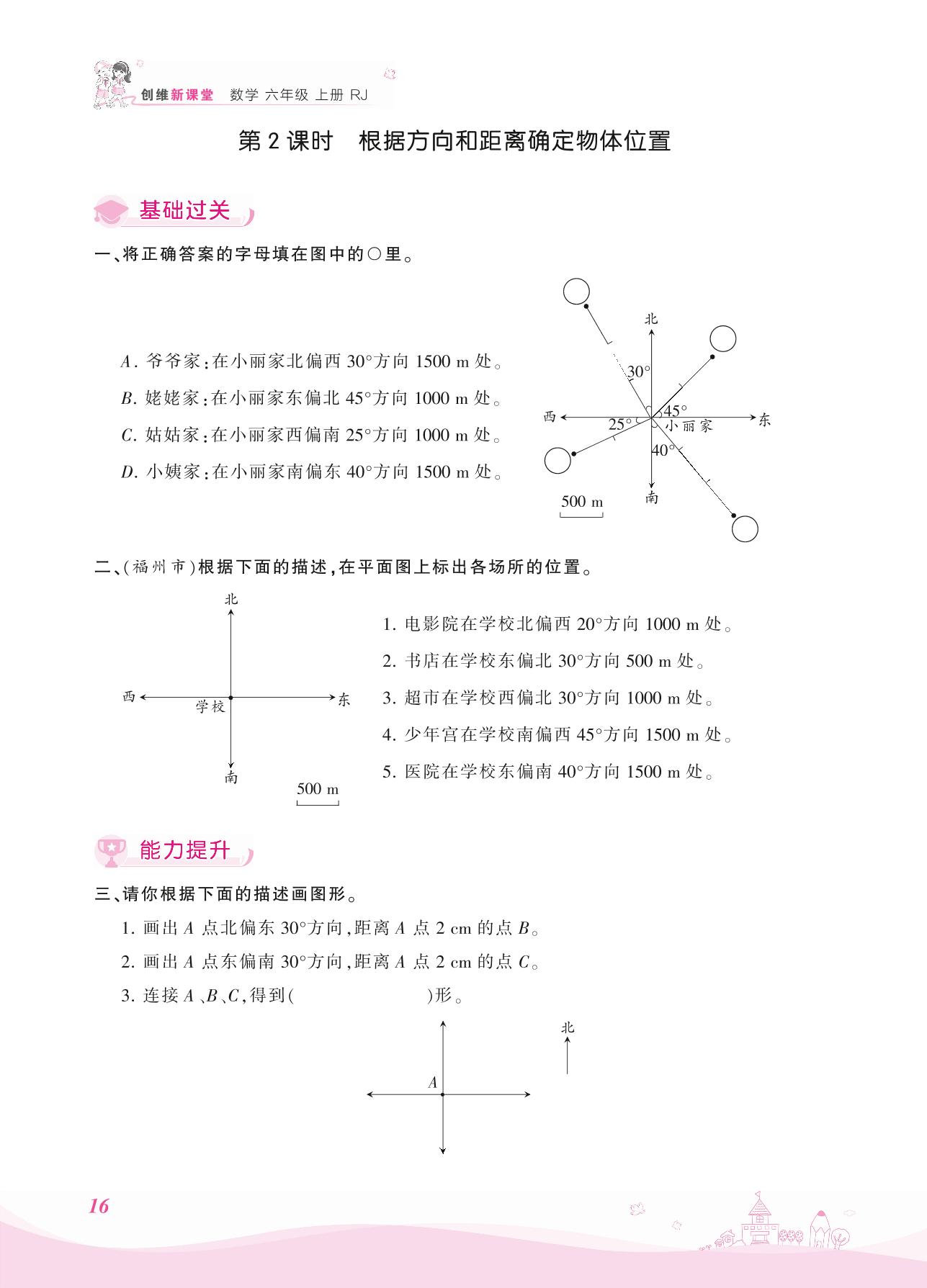 2021上册六年级数学人教版 二 位置与方向(二) ——第2课时 根据方向和距离确定物体位置