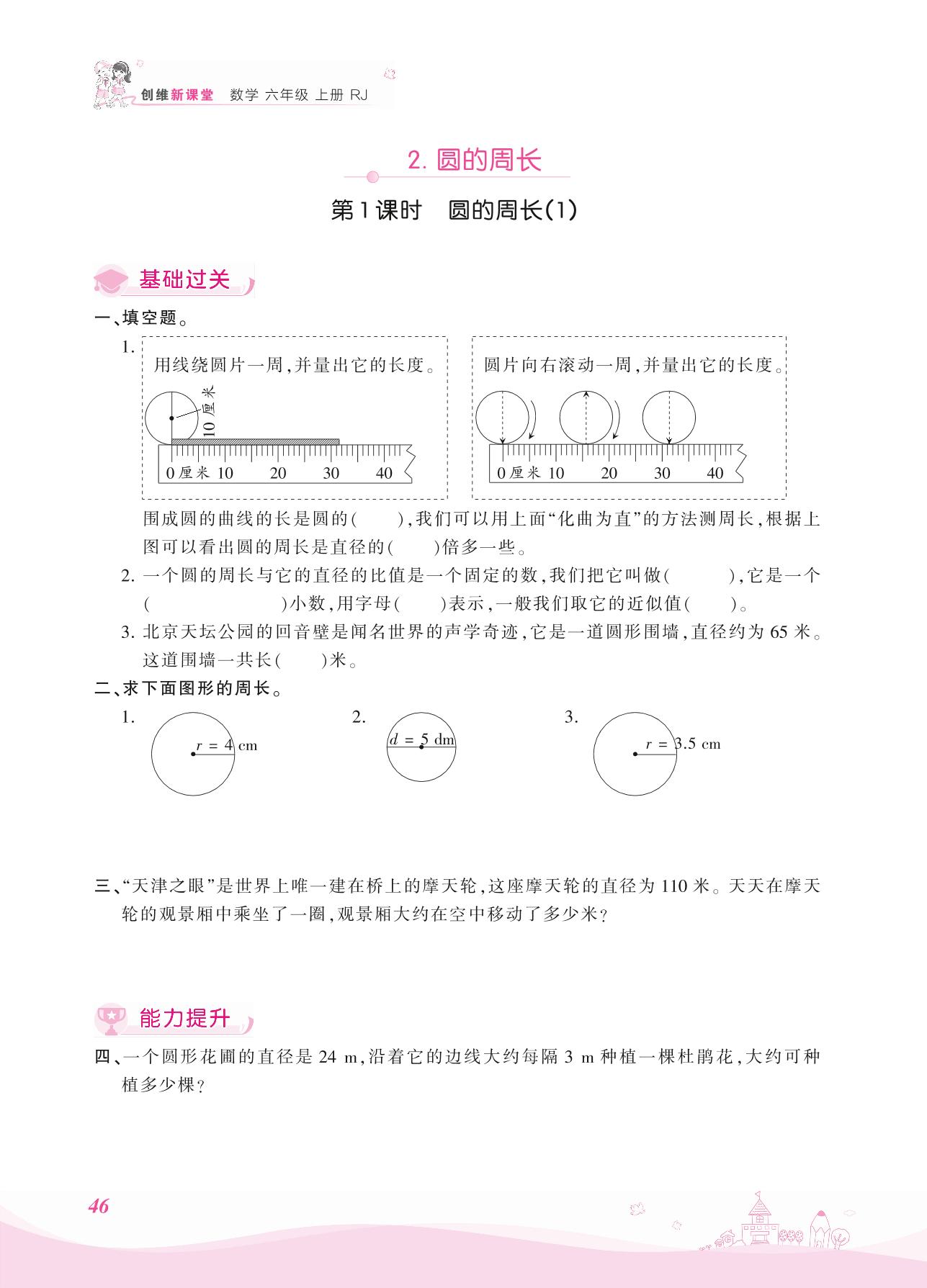 2021上册六年级数学人教版 五 圆 2. 圆的周长——第1课时 圆的周长(1)
