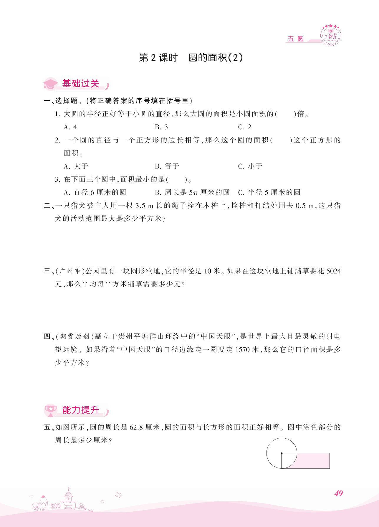 2021上册六年级数学人教版 五 圆 3. 圆的面积——第2课时 圆的面积(2)