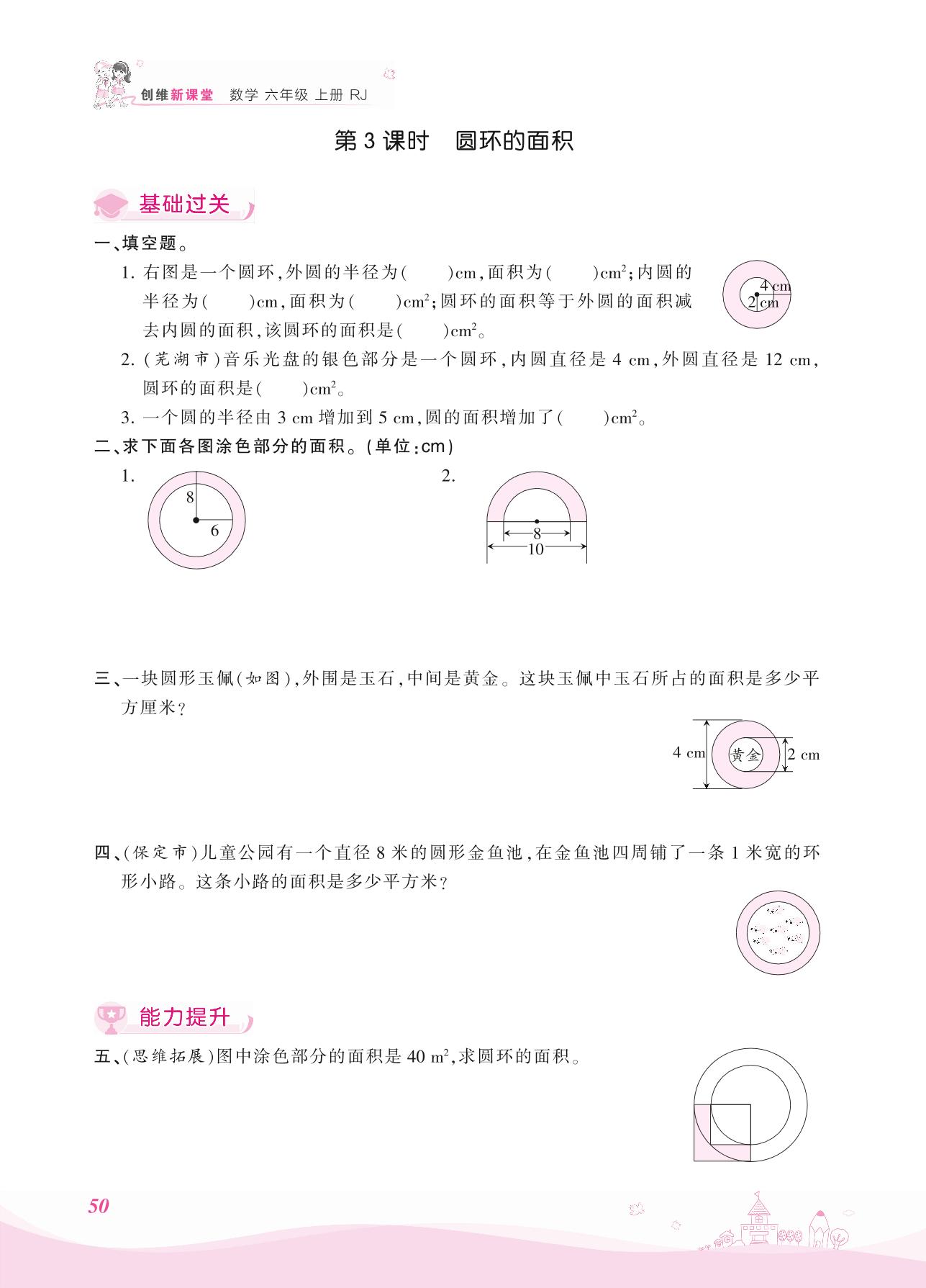 2021上册六年级数学人教版 五 圆 3. 圆的面积——第3课时 圆环的面积