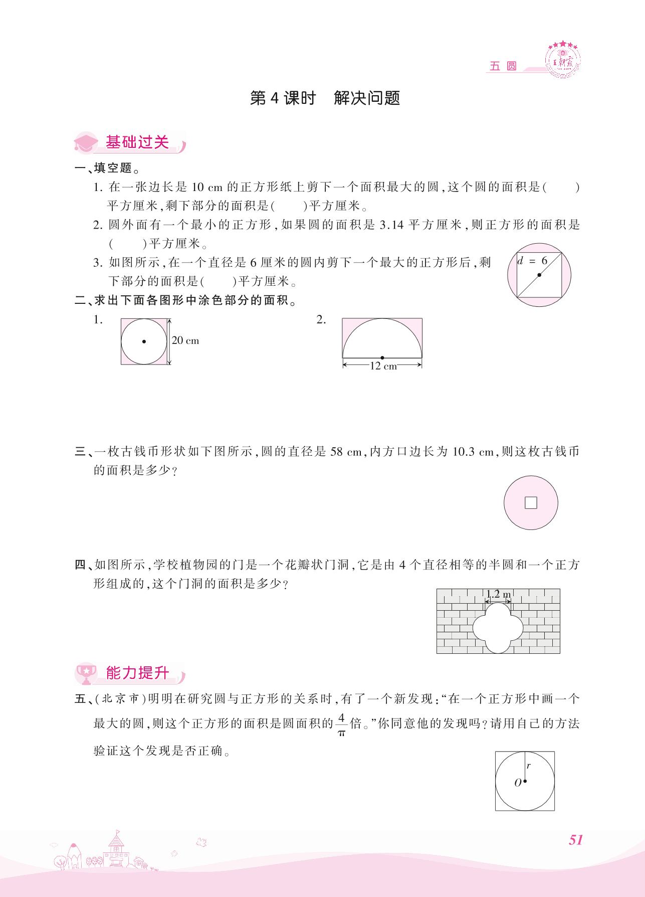 2021上册六年级数学人教版 五 圆 3. 圆的面积——第4课时 解决问题