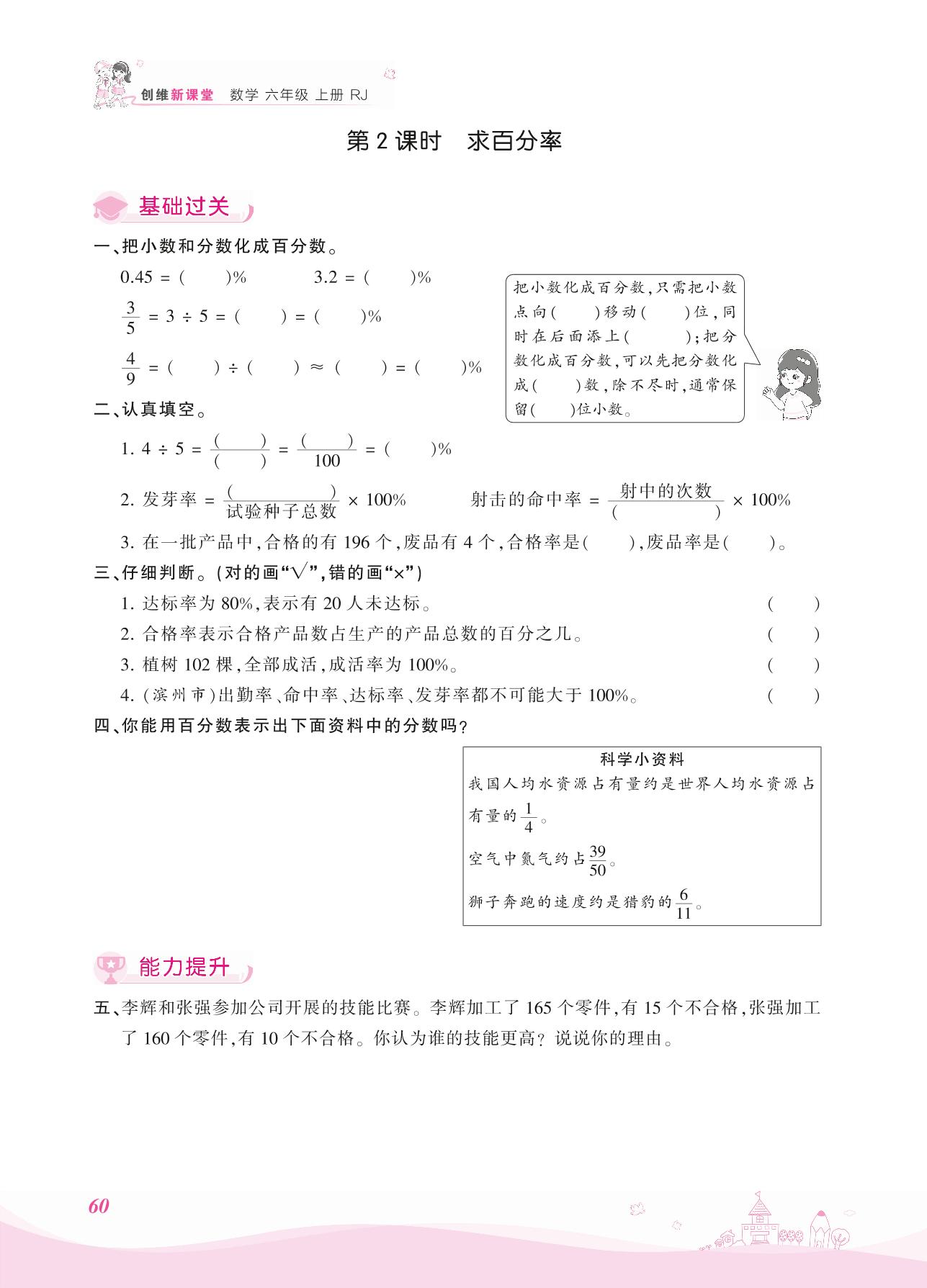 2021上册六年级数学人教版 六 百分数(一)——第2课时 求百分率