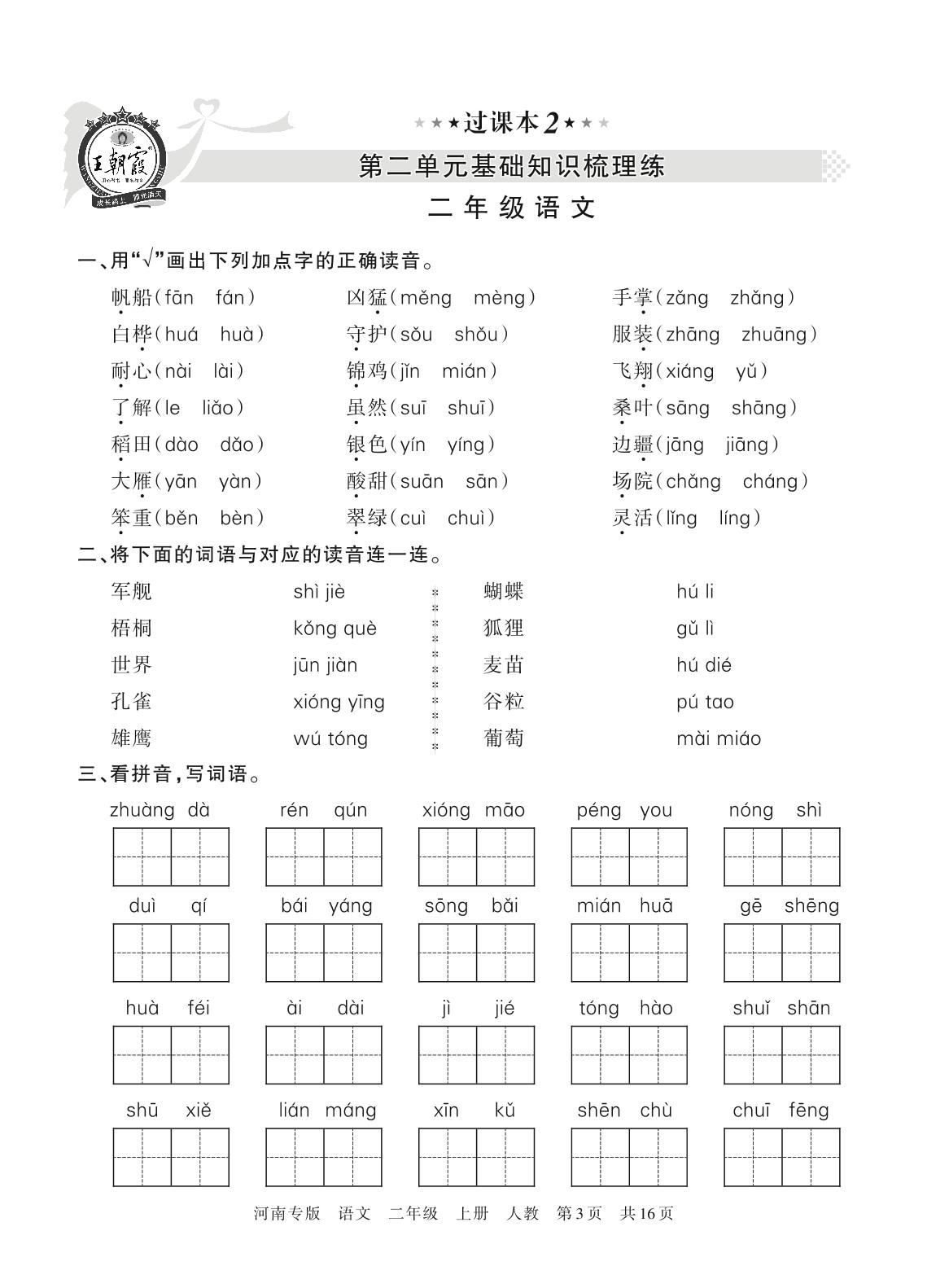 王朝霞期末过课本——第二单元基础知识梳理练二年级上册语文(人教版)正文