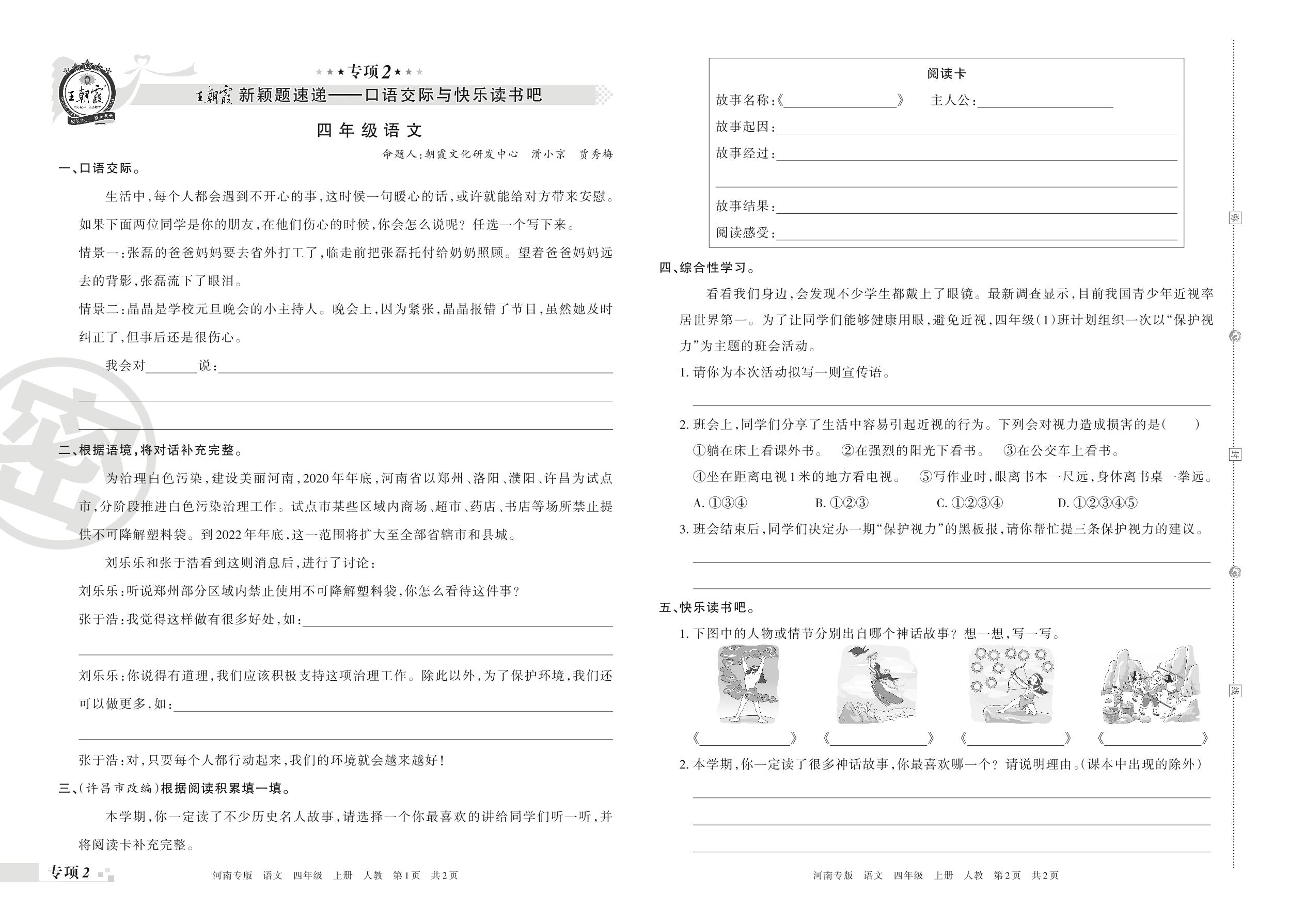 王朝霞期末专项卷——口语交际与快乐读书吧四年级上册语文(人教版)