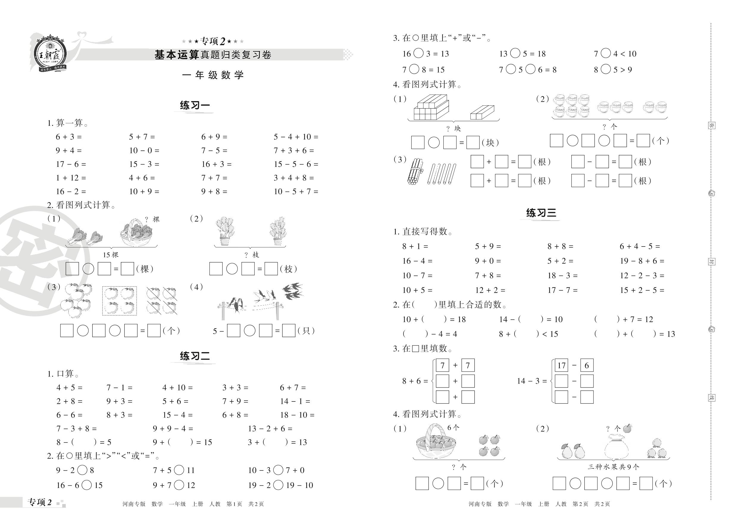 王朝霞期末专项卷——基本运算真题归类复习一年级上册数学(人教版)_R211225152756697【2】